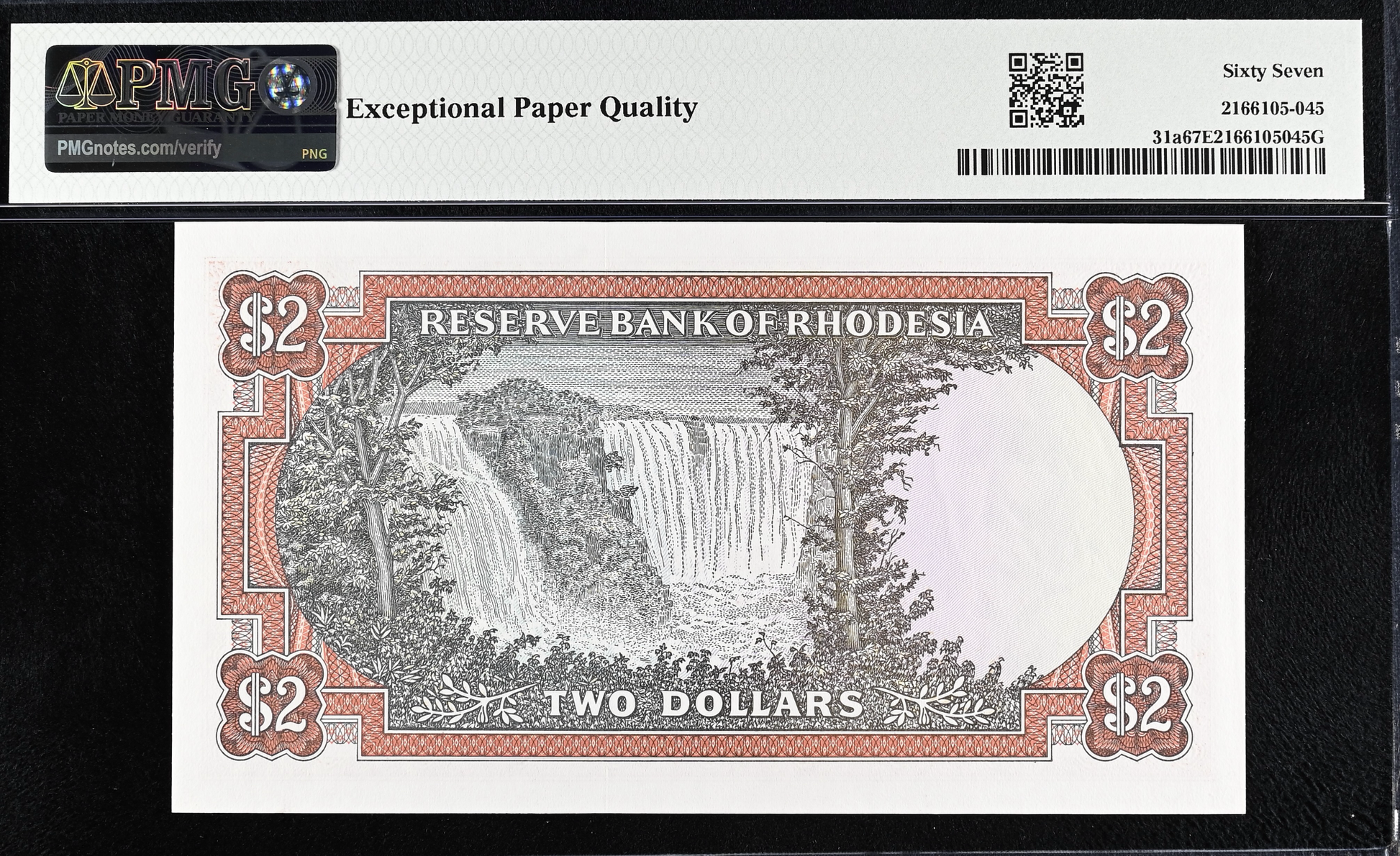 RHODESIA P.31a 1970 rare first date 2 dollars Superb Gem UNC 67 EPQ