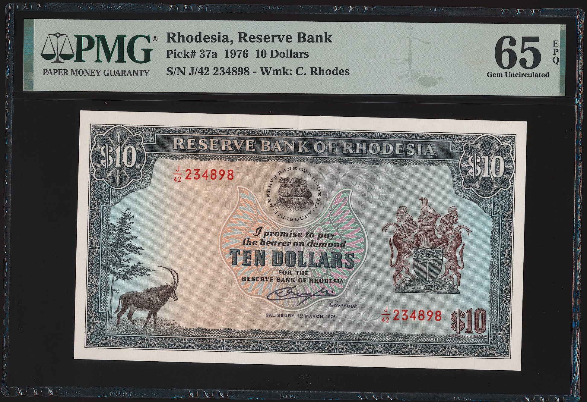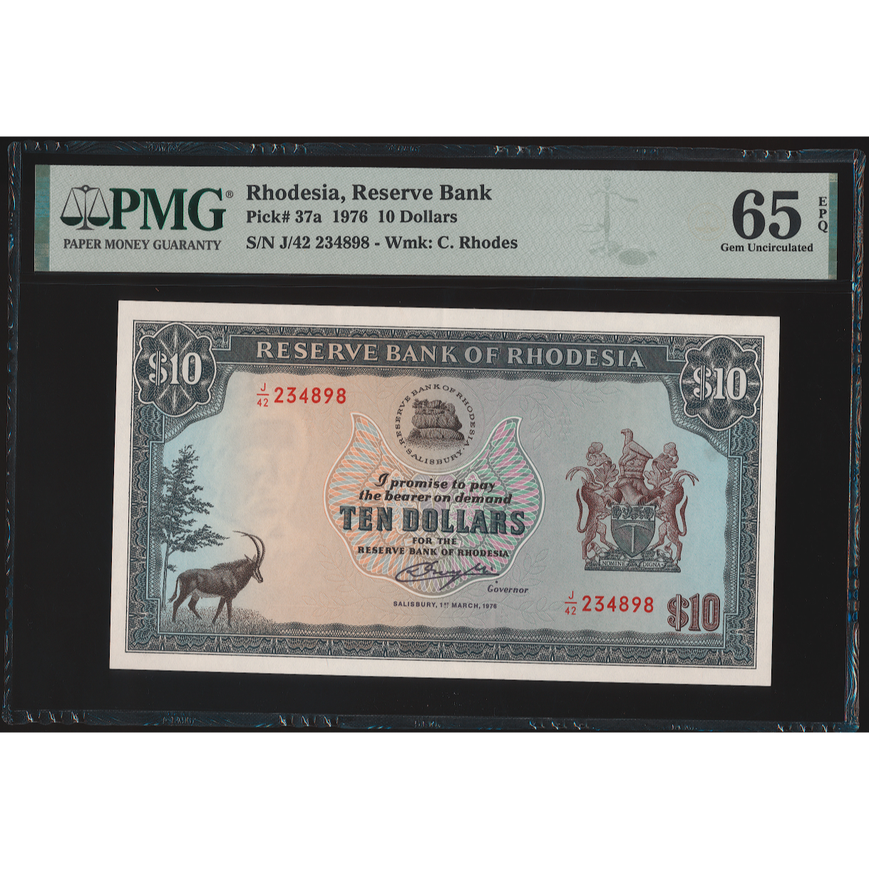 RHODESIA P.37a 1976 10 dollars GEM UNC 65 EPQ