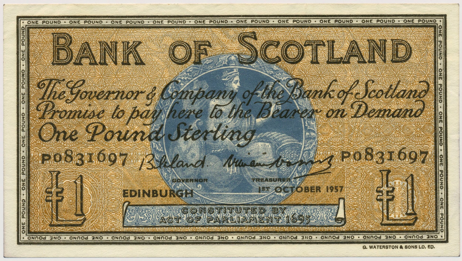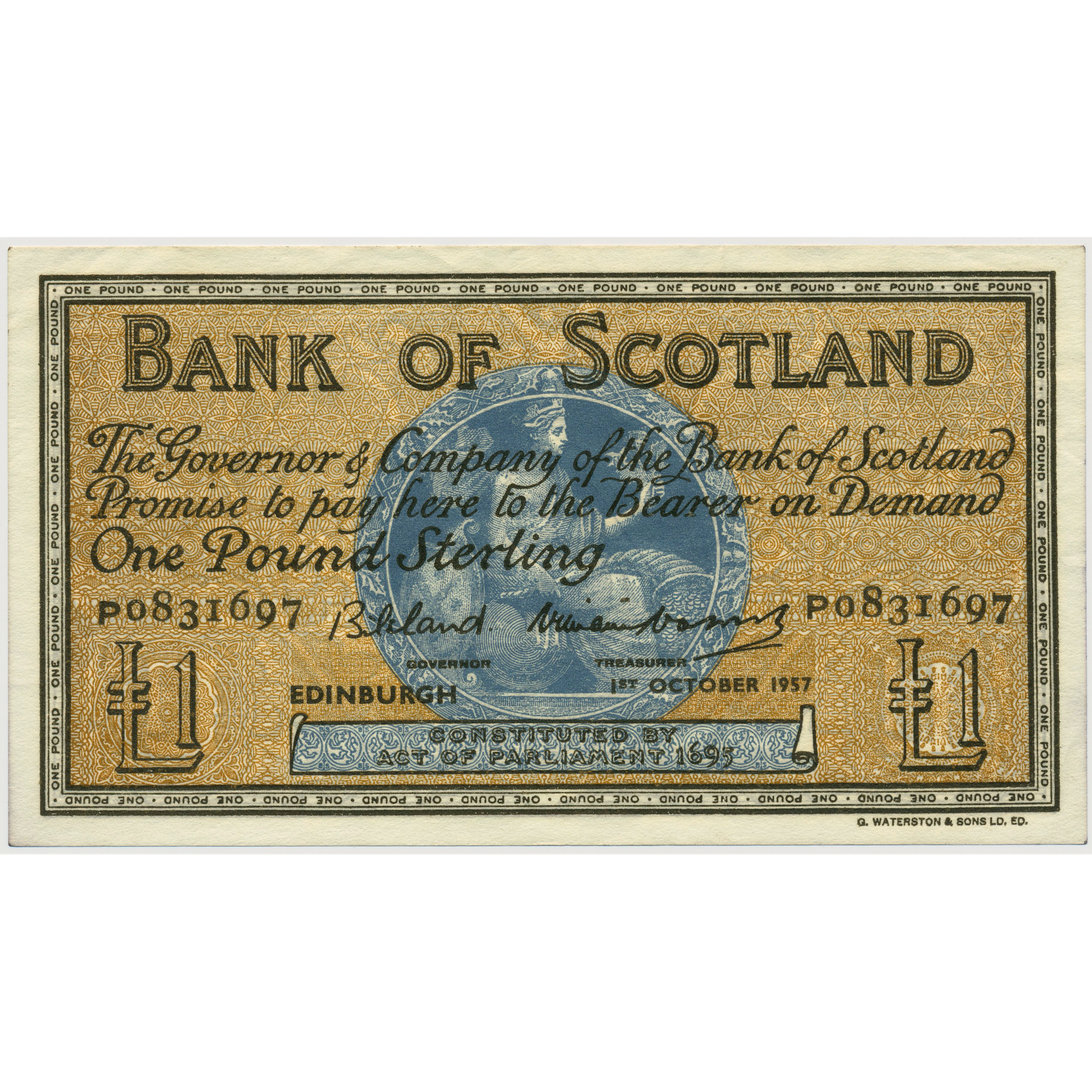 SCOTLAND P.100c SC106c 1957 Bank of Scotland £1 GVF P