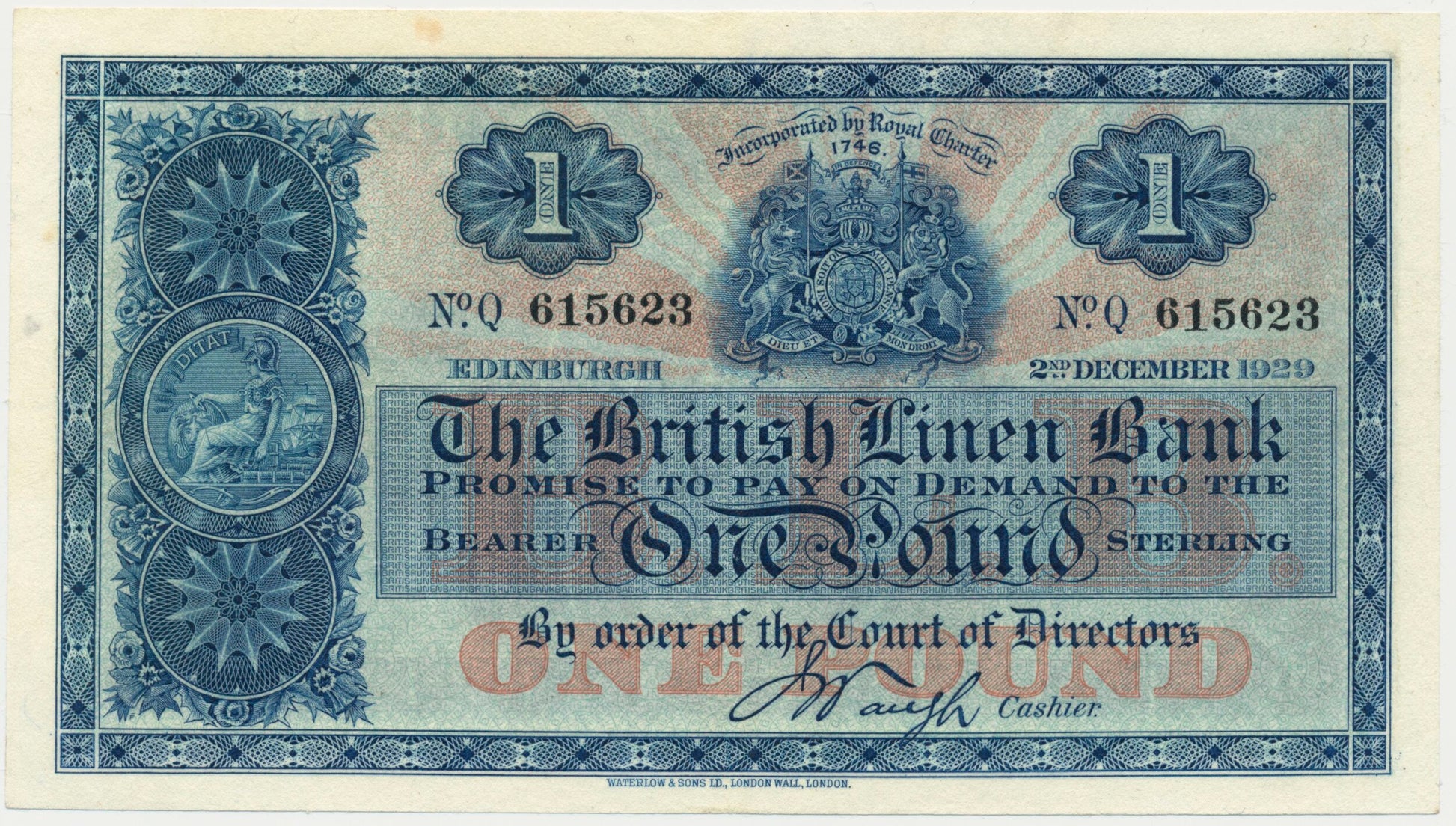 SCOTLAND P.156 SC203 1929 British Linen Bank £1 EF Q