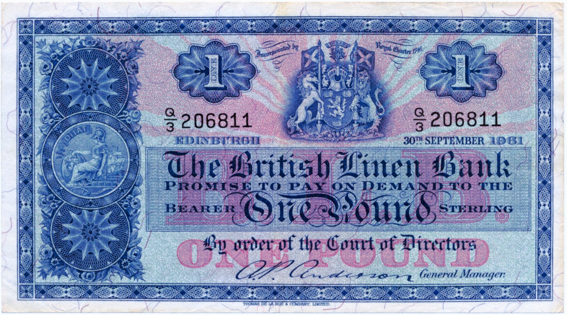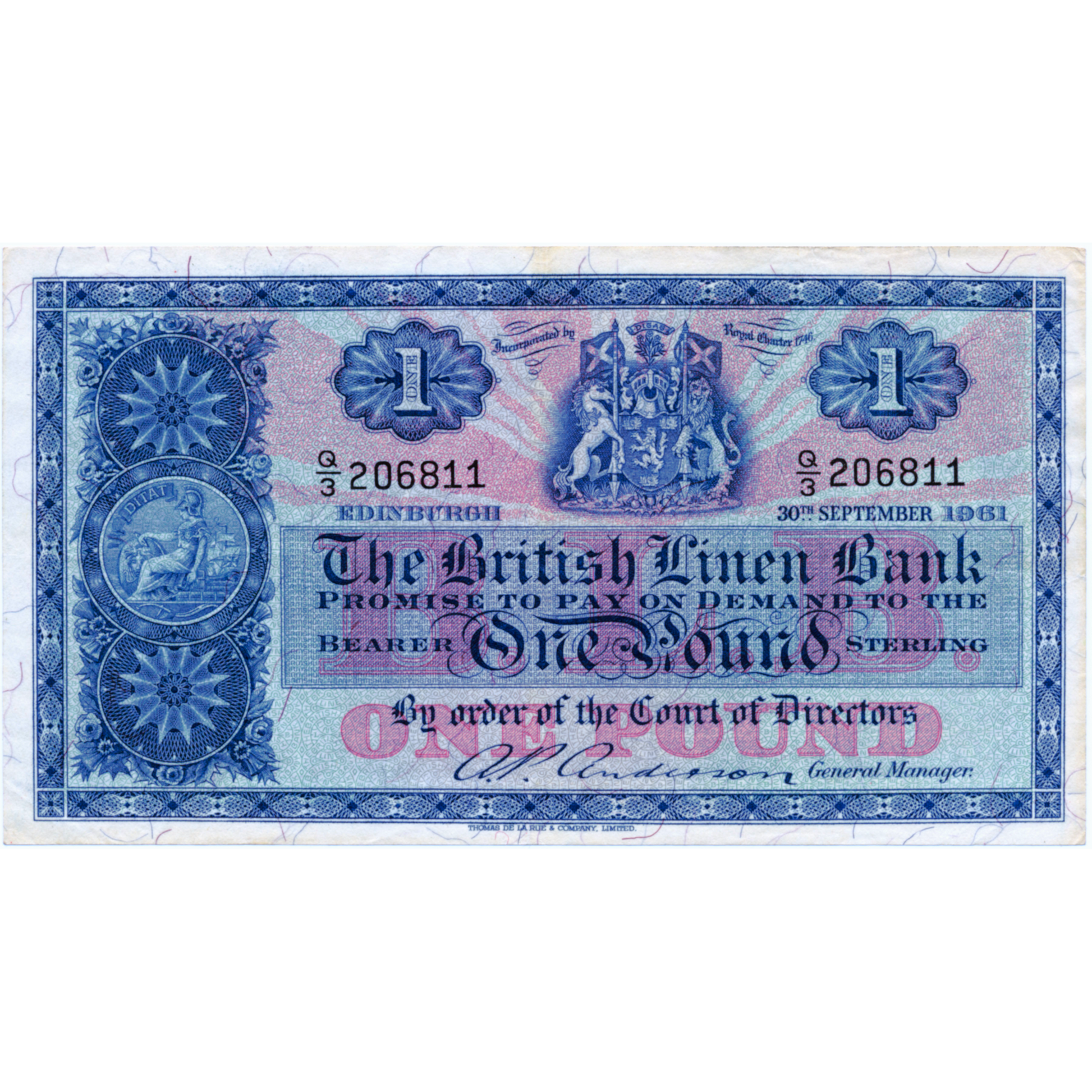 SCOTLAND P.162 SC207 1961 British Linen Bank First series £1 EF Q/3
