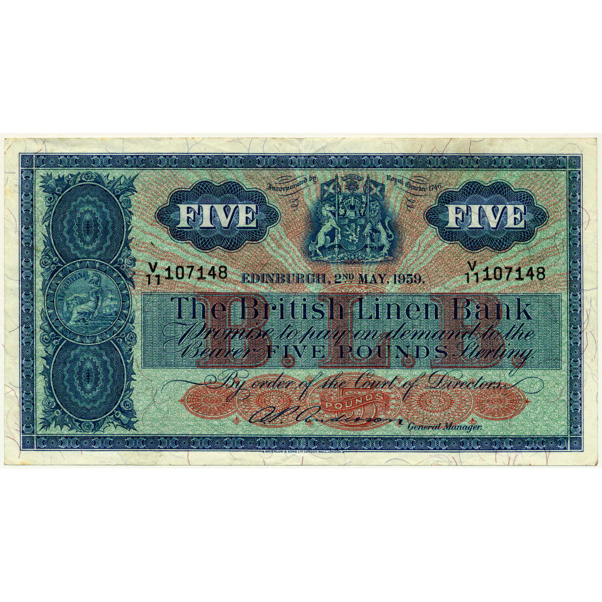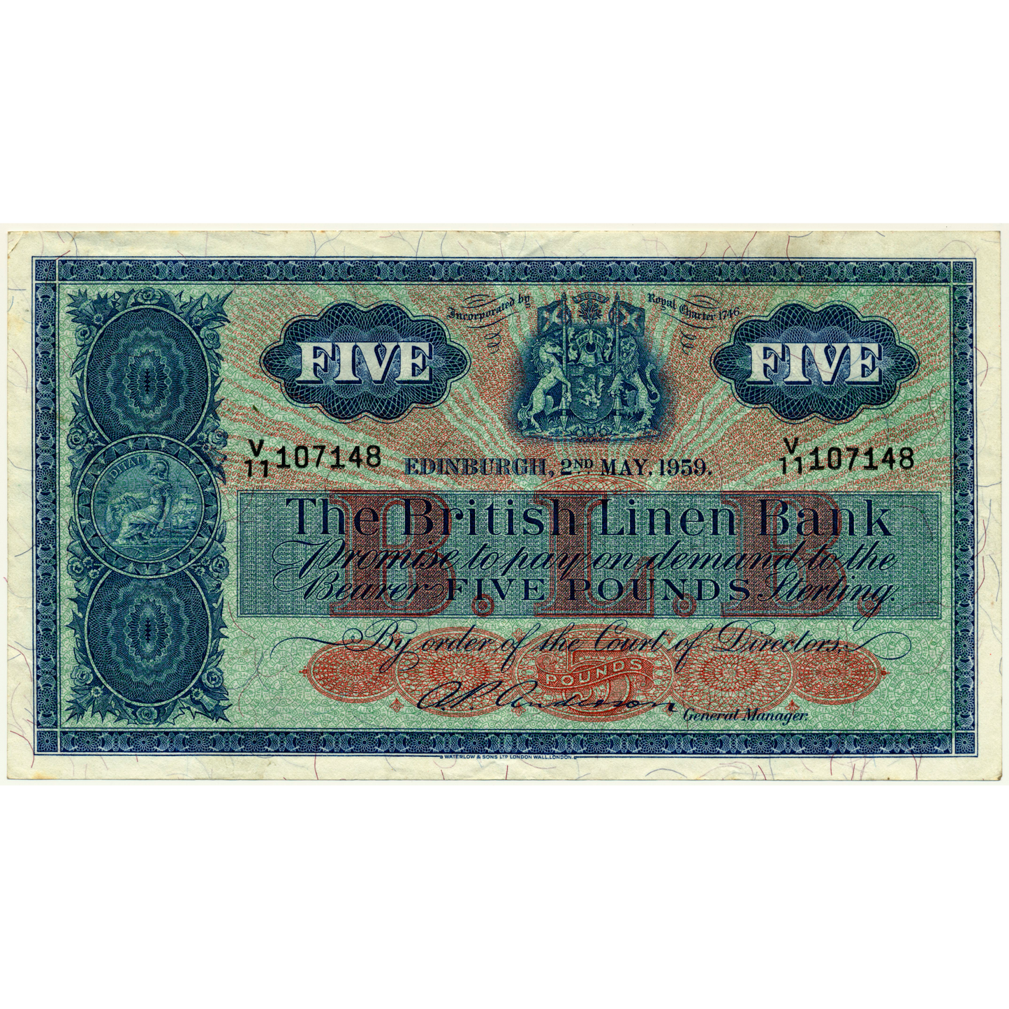 SCOTLAND P.161b SC214c 1959 British Linen Bank £5 VF V/11
