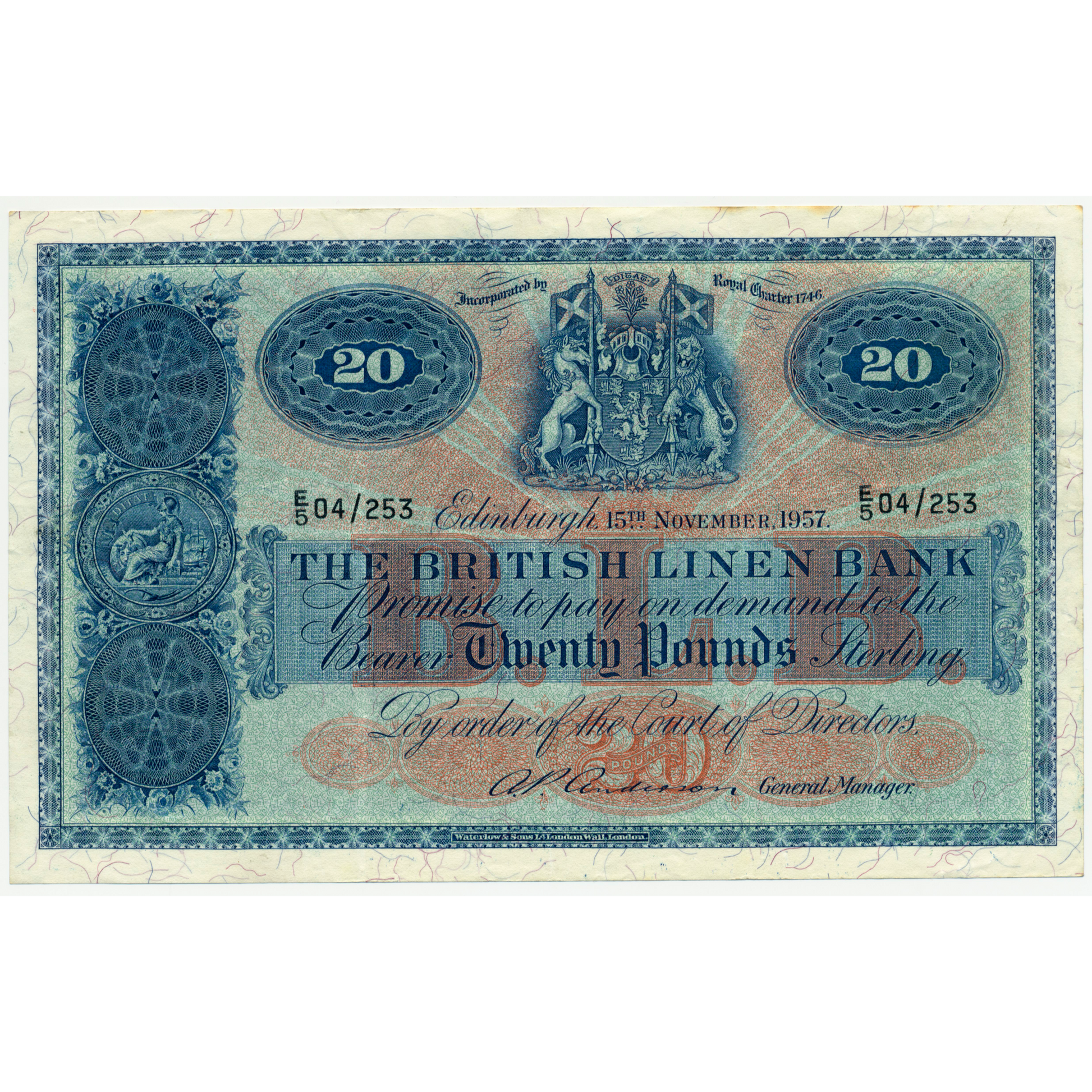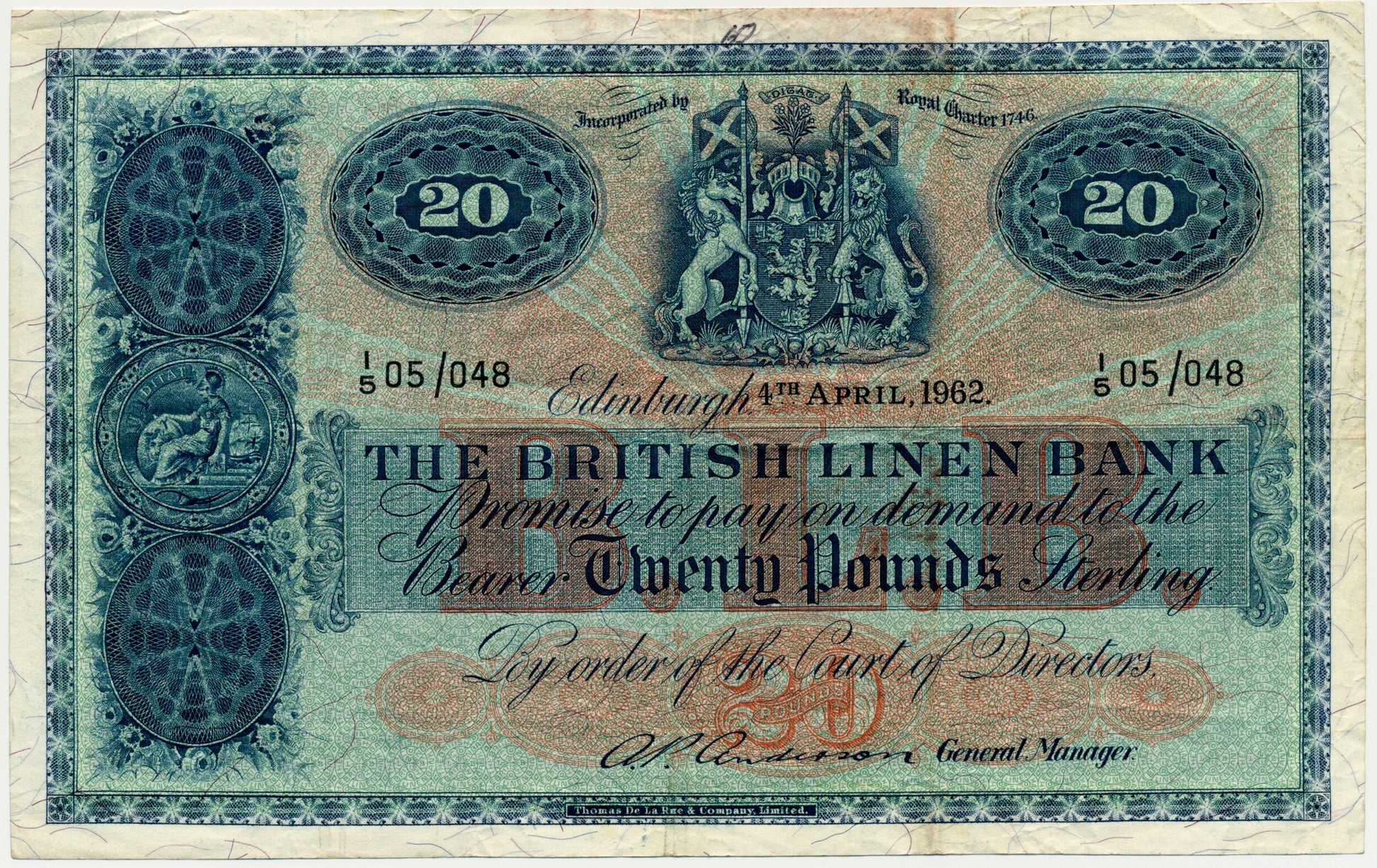 SCOTLAND P.164 SC236 1962 British Linen Bank £20 VF I/5