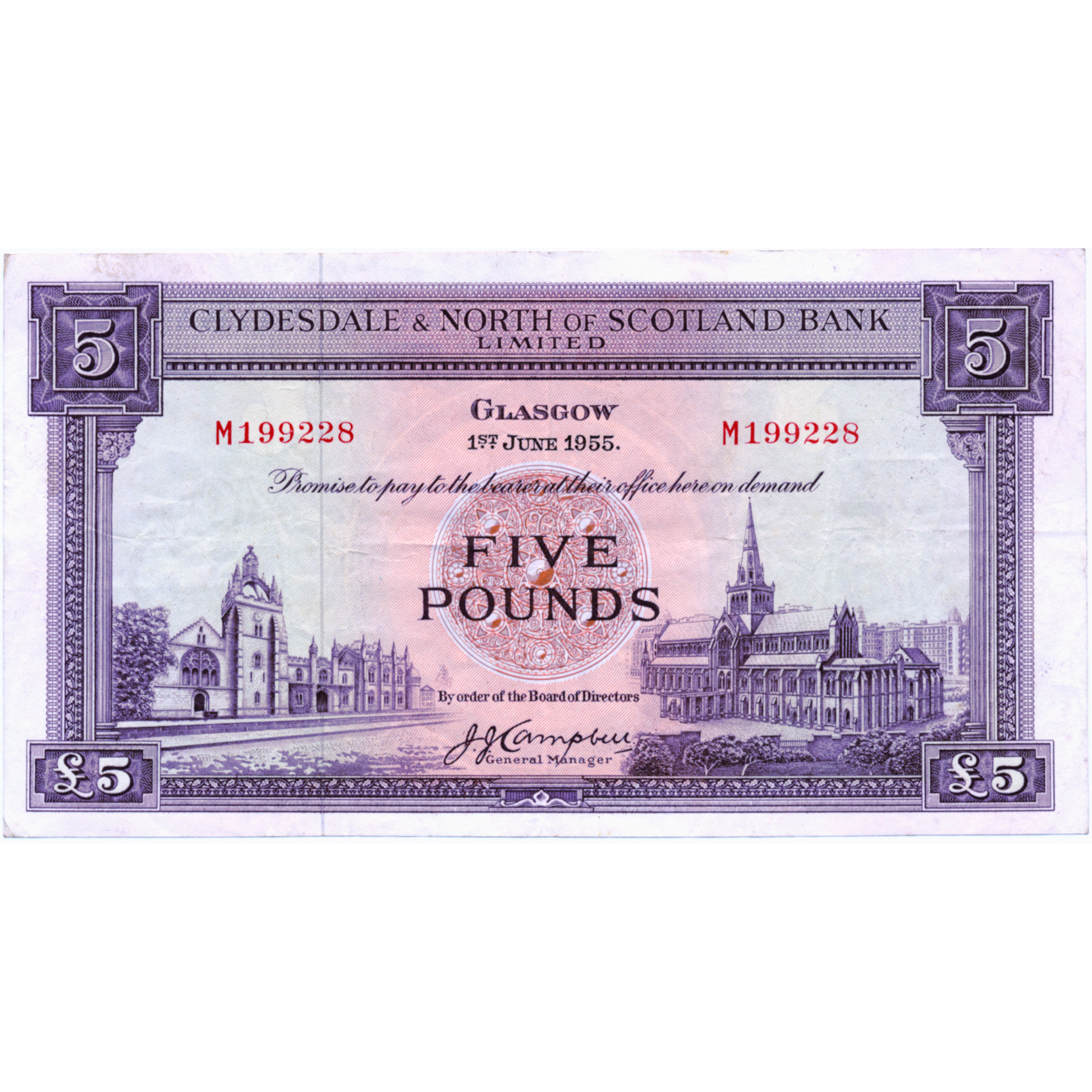 SCOTLAND P.192a SC313a 1954 Clydesdale & North of Scotland Bank £5 GVF M