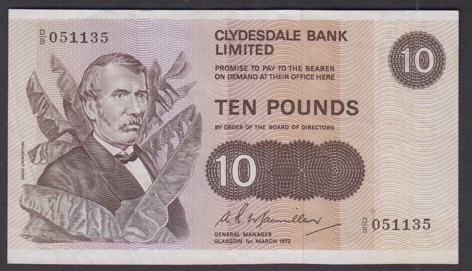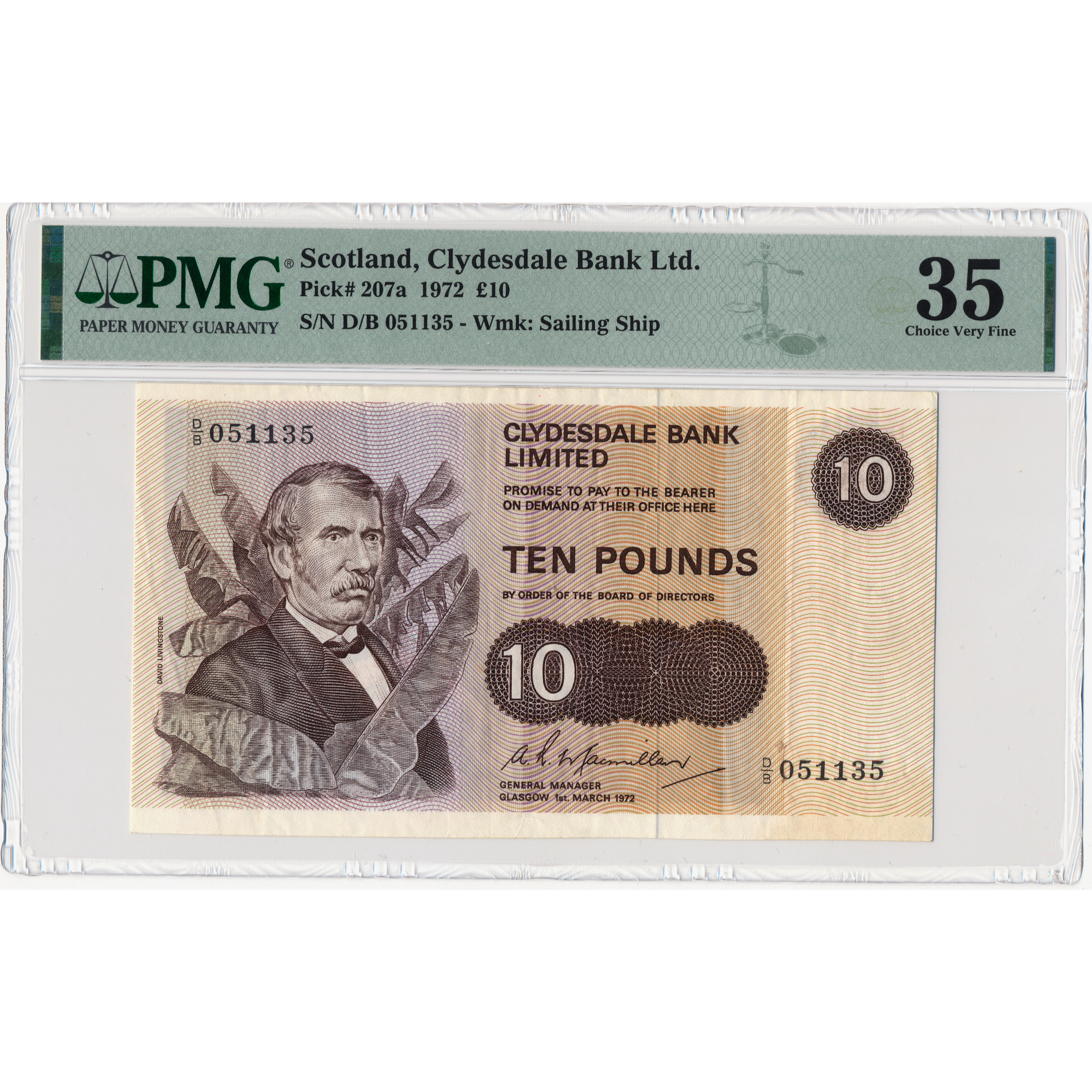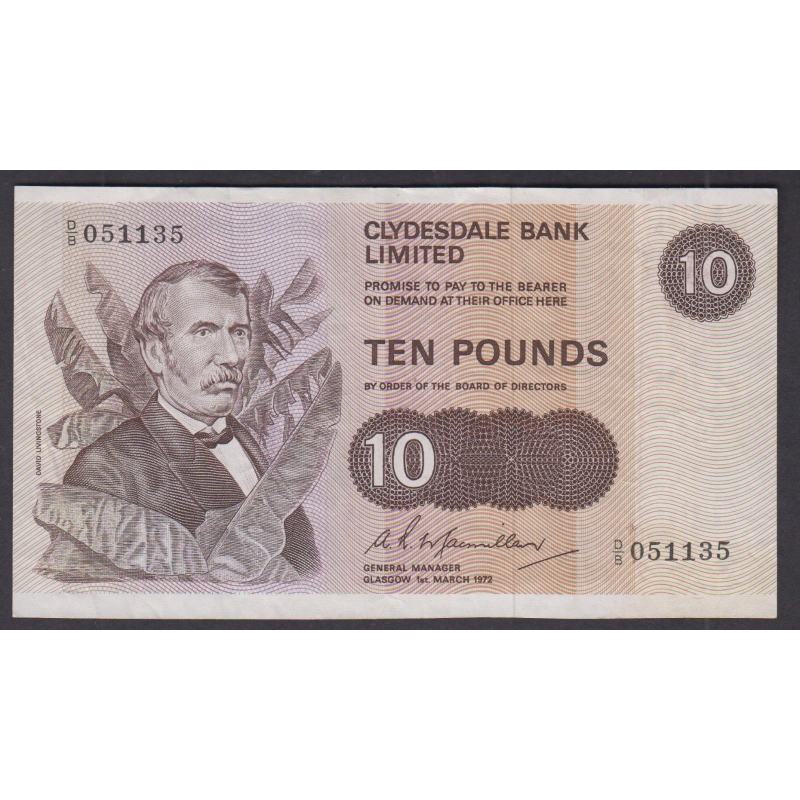 SCOTLAND P.207a SC322a 1972 Clydesdale Bank £10 Choice VF
