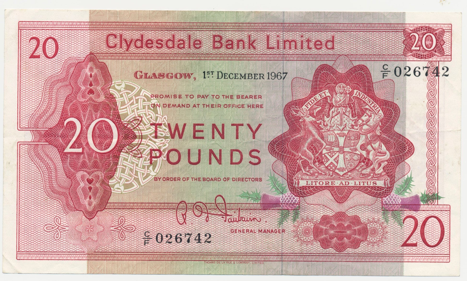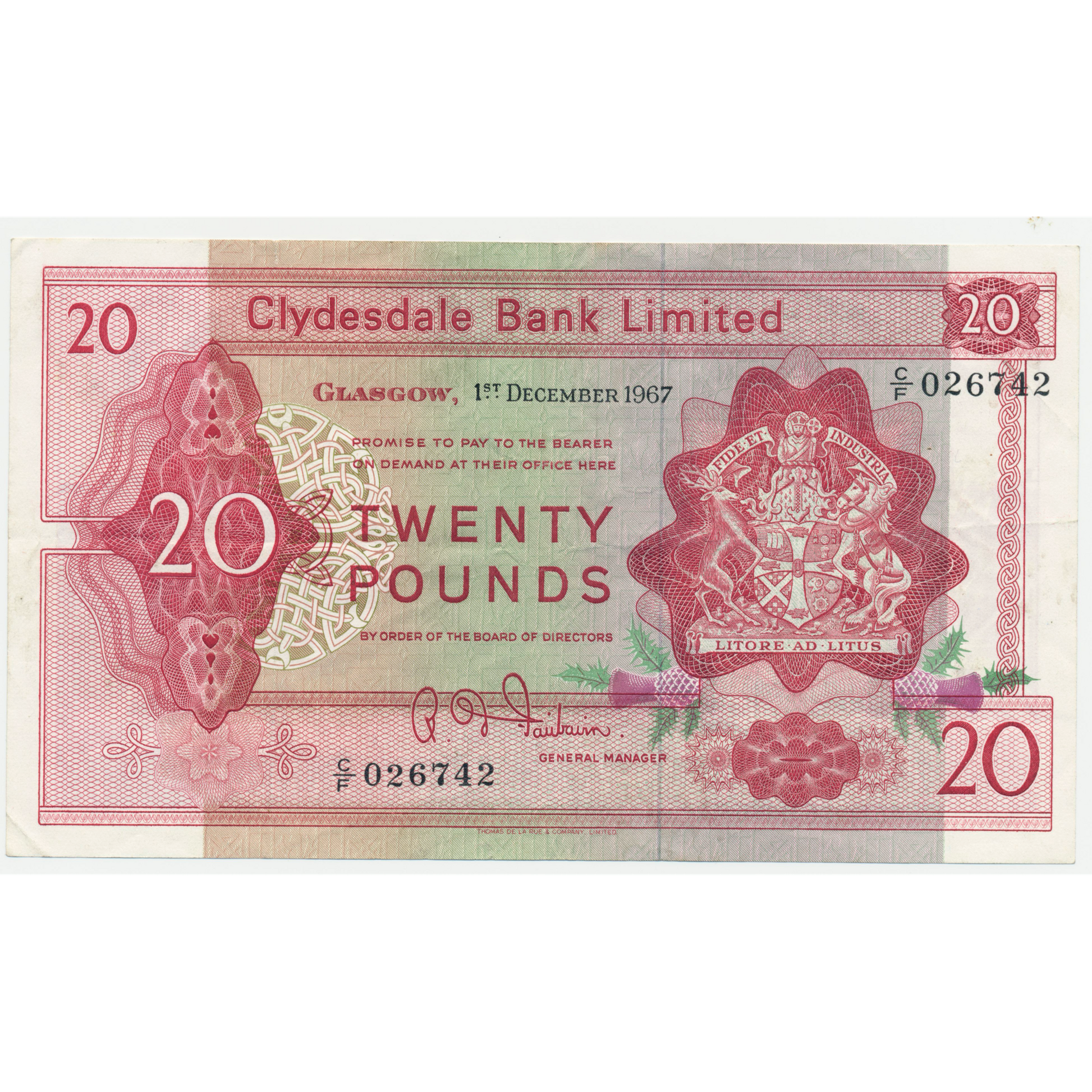 SCOTLAND P.200 SC323 1967 Clydesdale Bank £20 VF 30