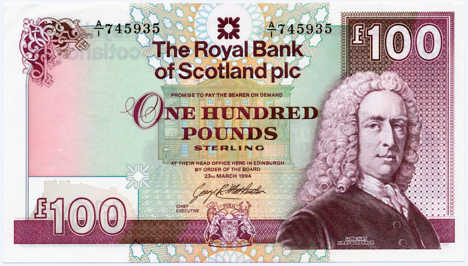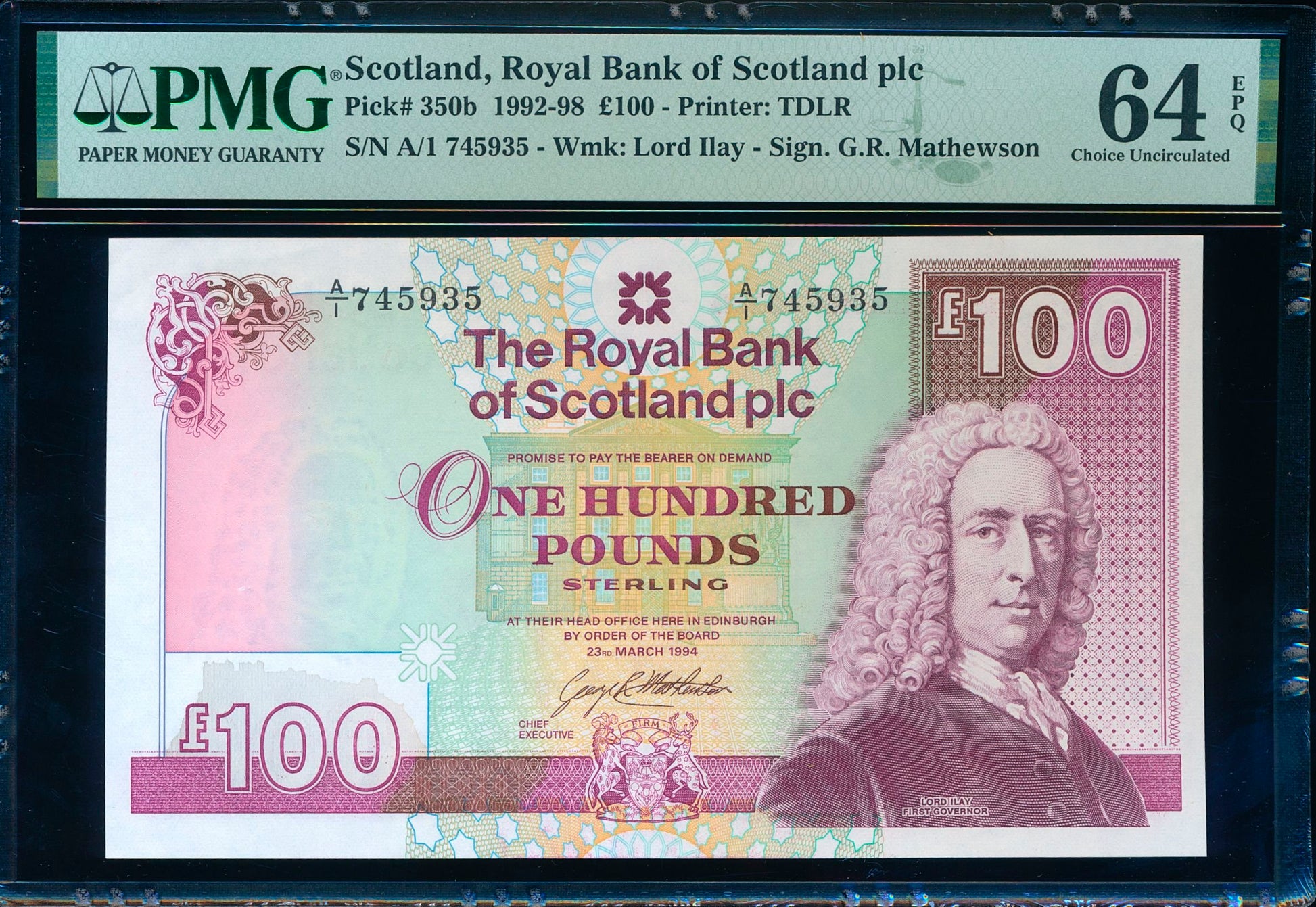 SCOTLAND P.350b SC882b 1994 Royal Bank of Scotland First series £100 A/1 64EPQ CHOICE UNC