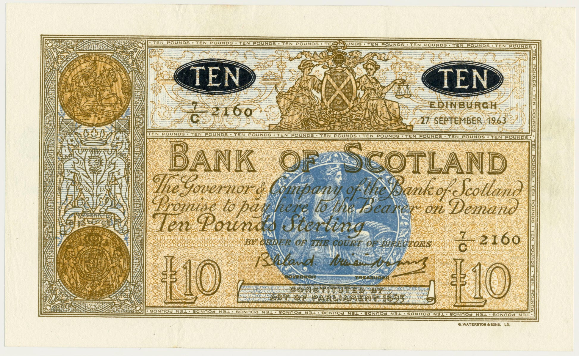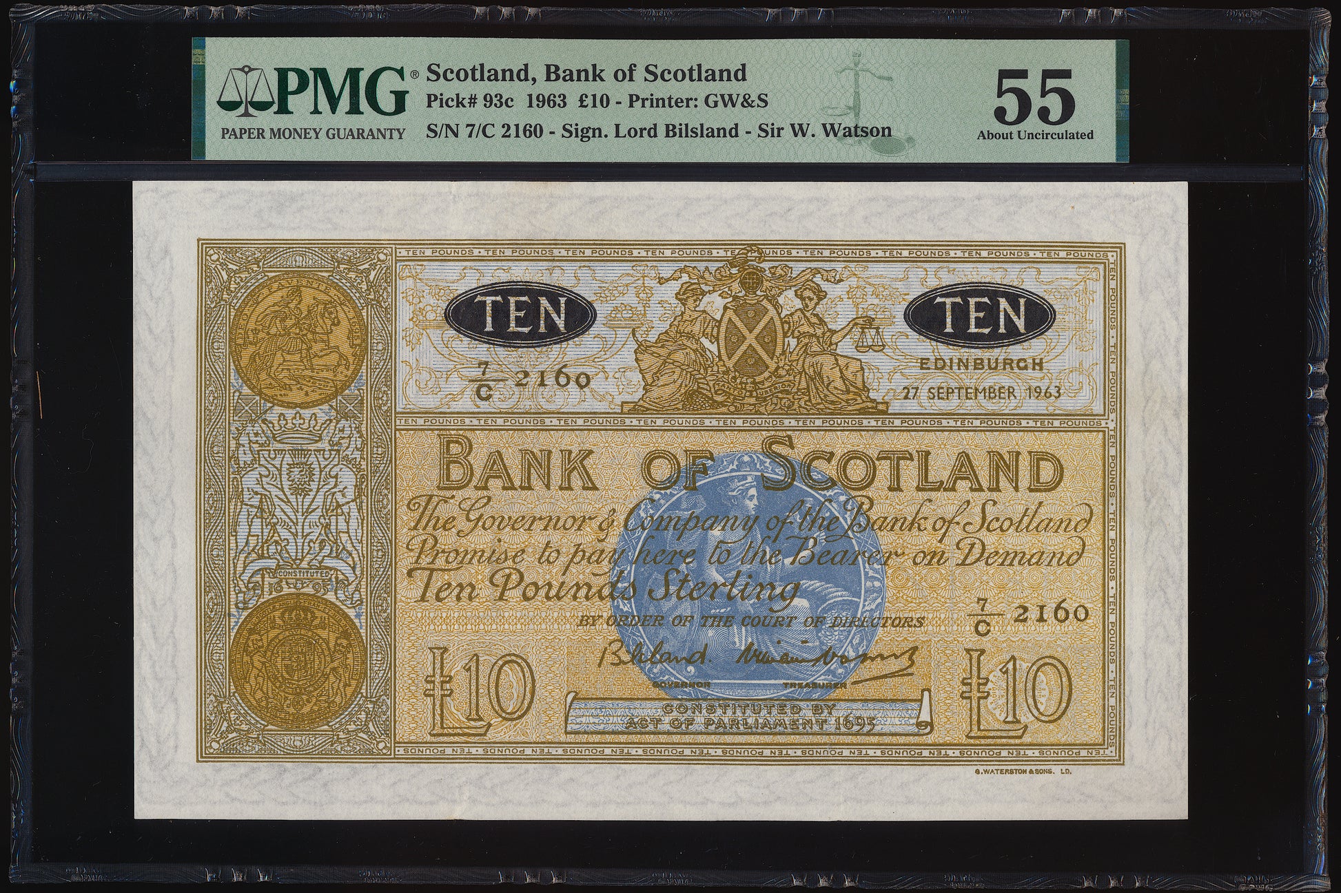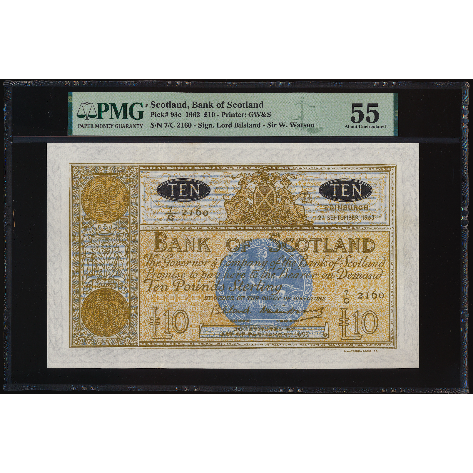 SCOTLAND P.93c SC133 1963 Bank of Scotland £10 AUNC55