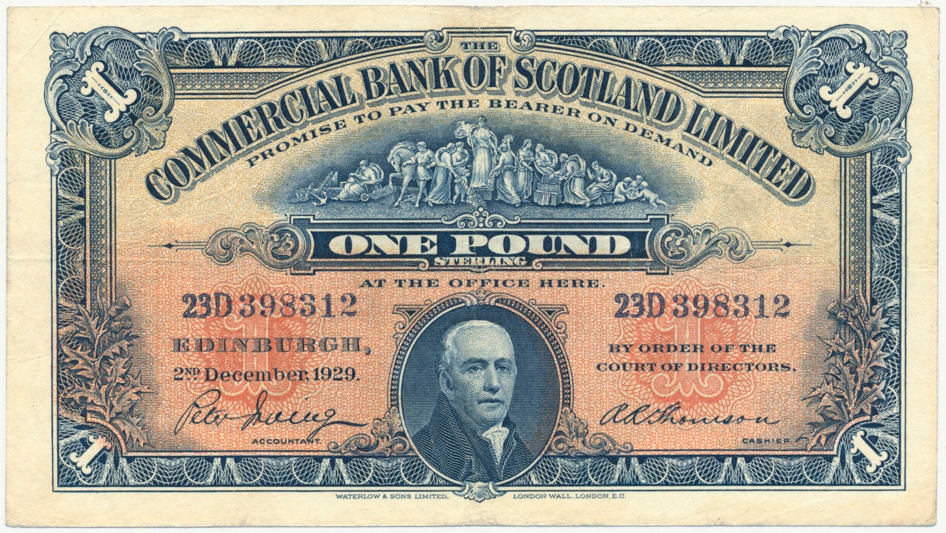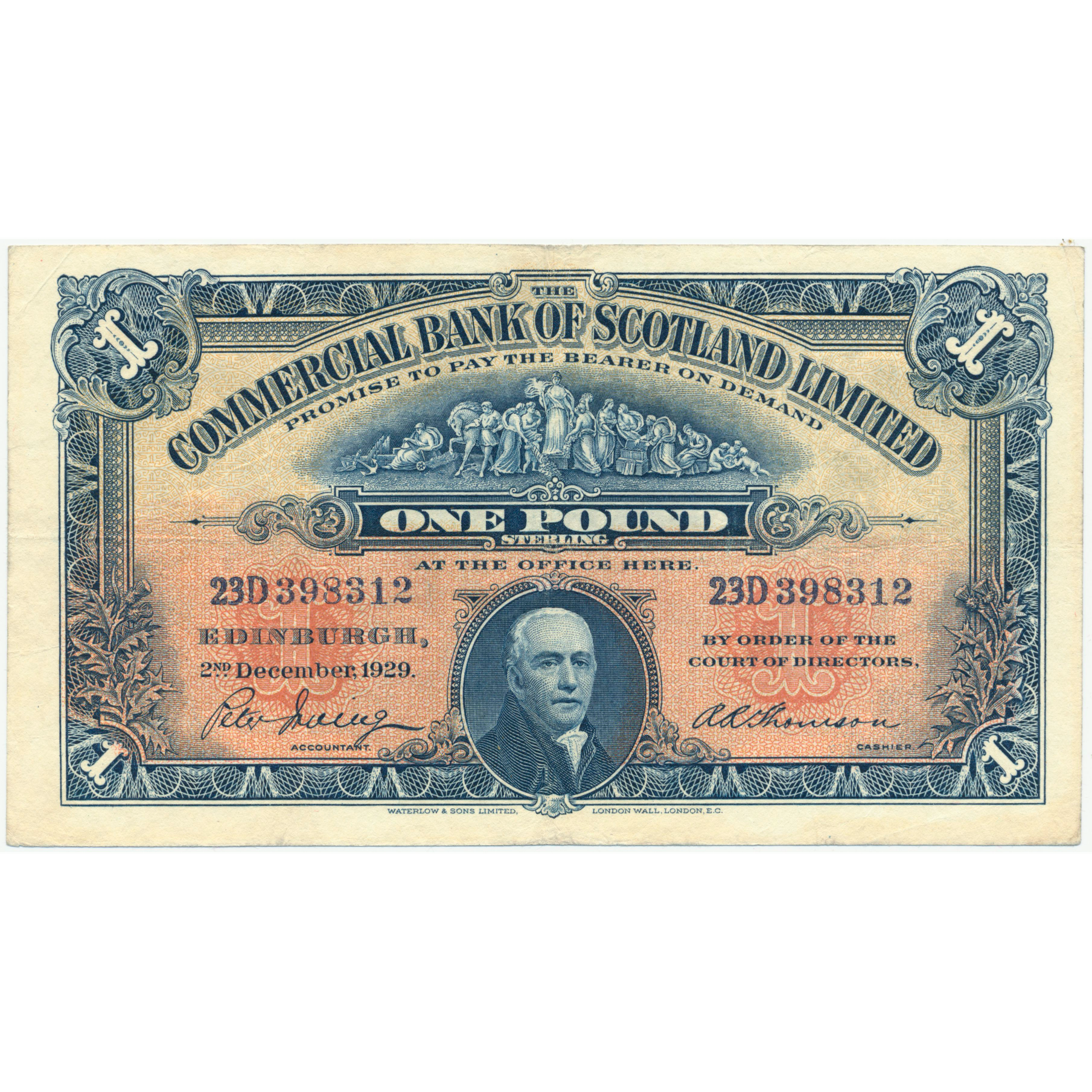 SCOTLAND P.S331a SC404c 1929 Commercial Bank of Scotland First series £1 AVF 23D