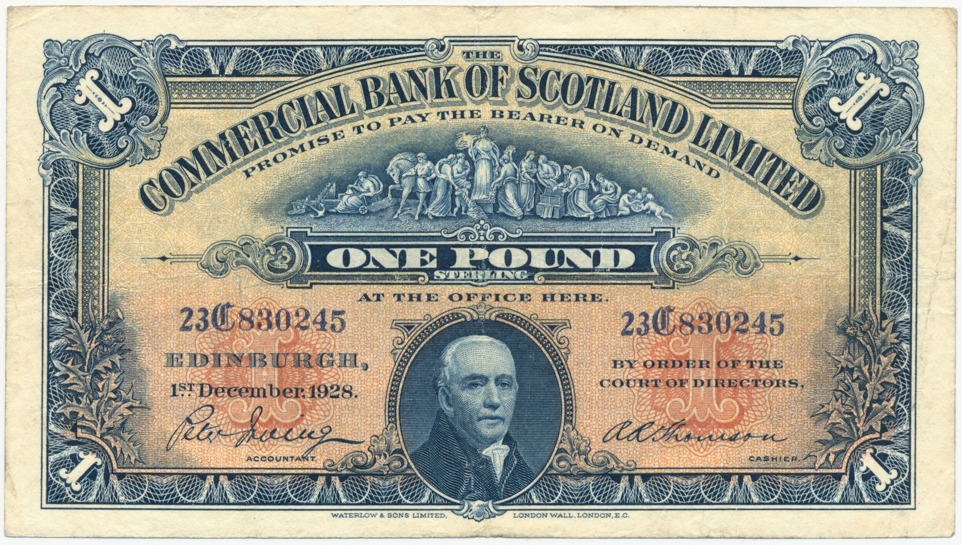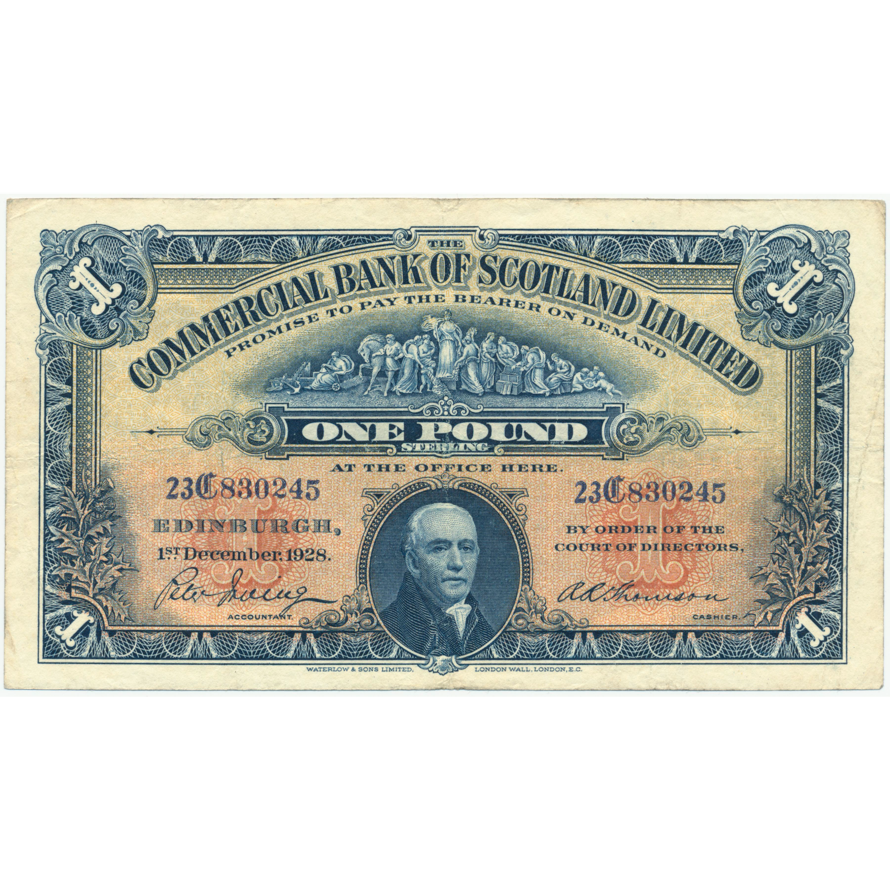 SCOTLAND P.S331a SC404b 1928 Commercial Bank of Scotland First series £1 GF 23C