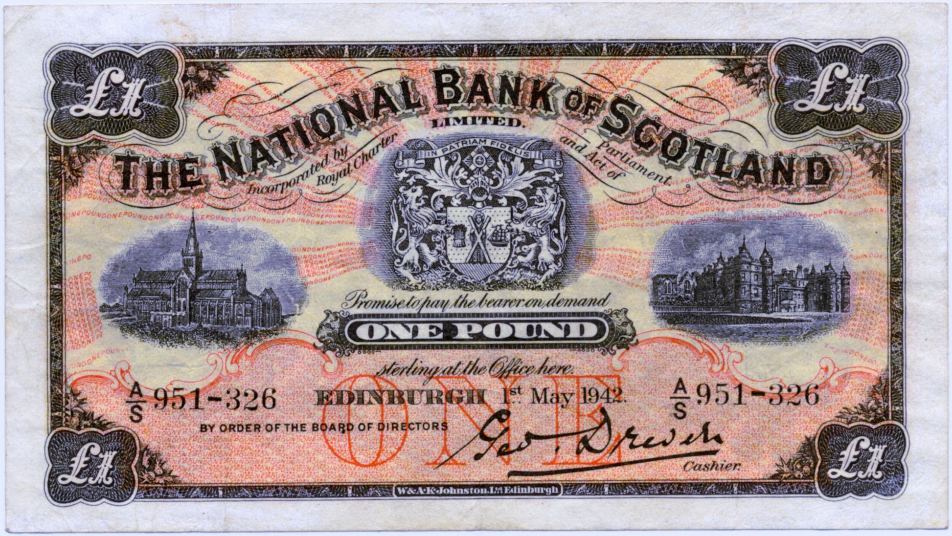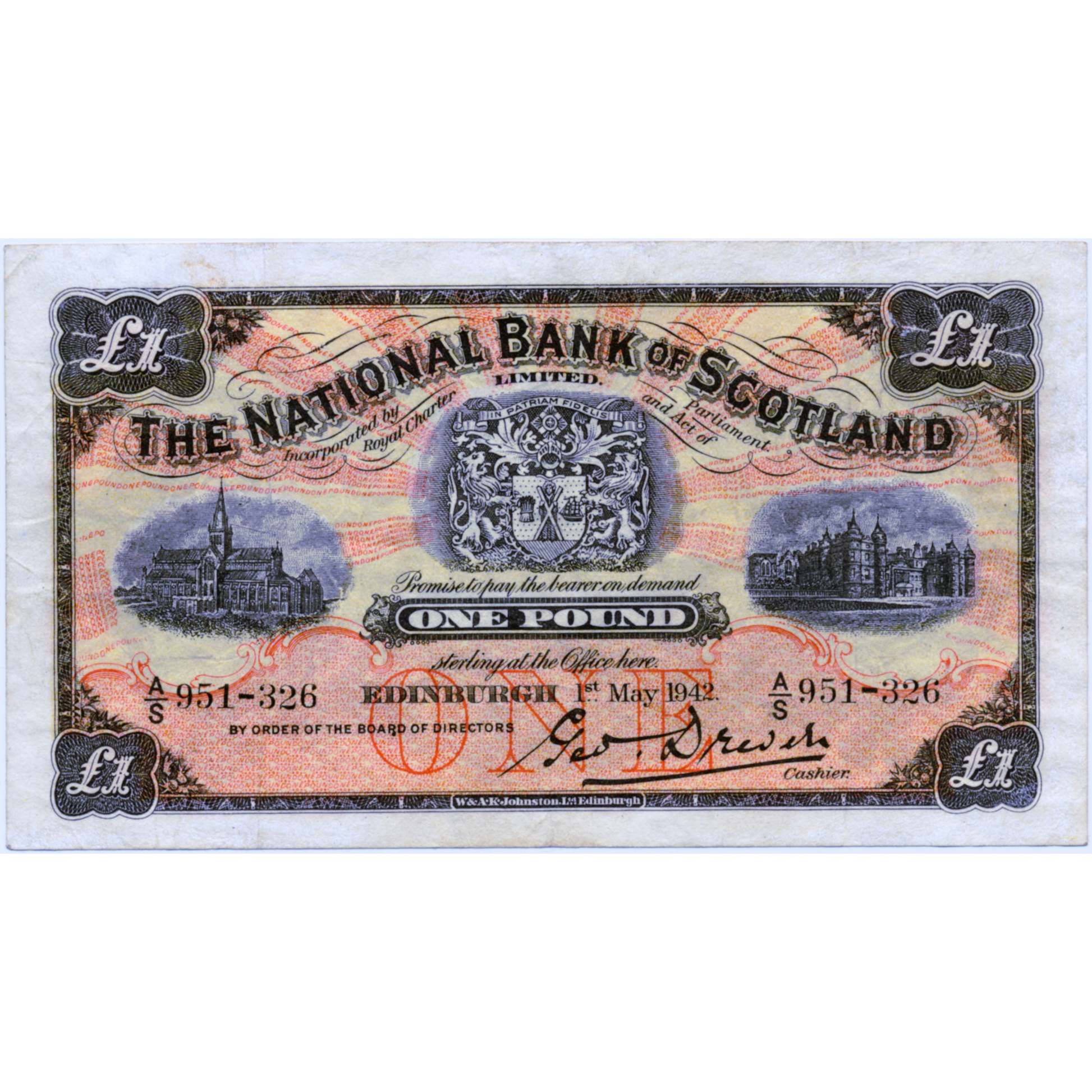 SCOTLAND P.258a SC503a 1942 National Bank of Scotland Last series £1 VF A/S