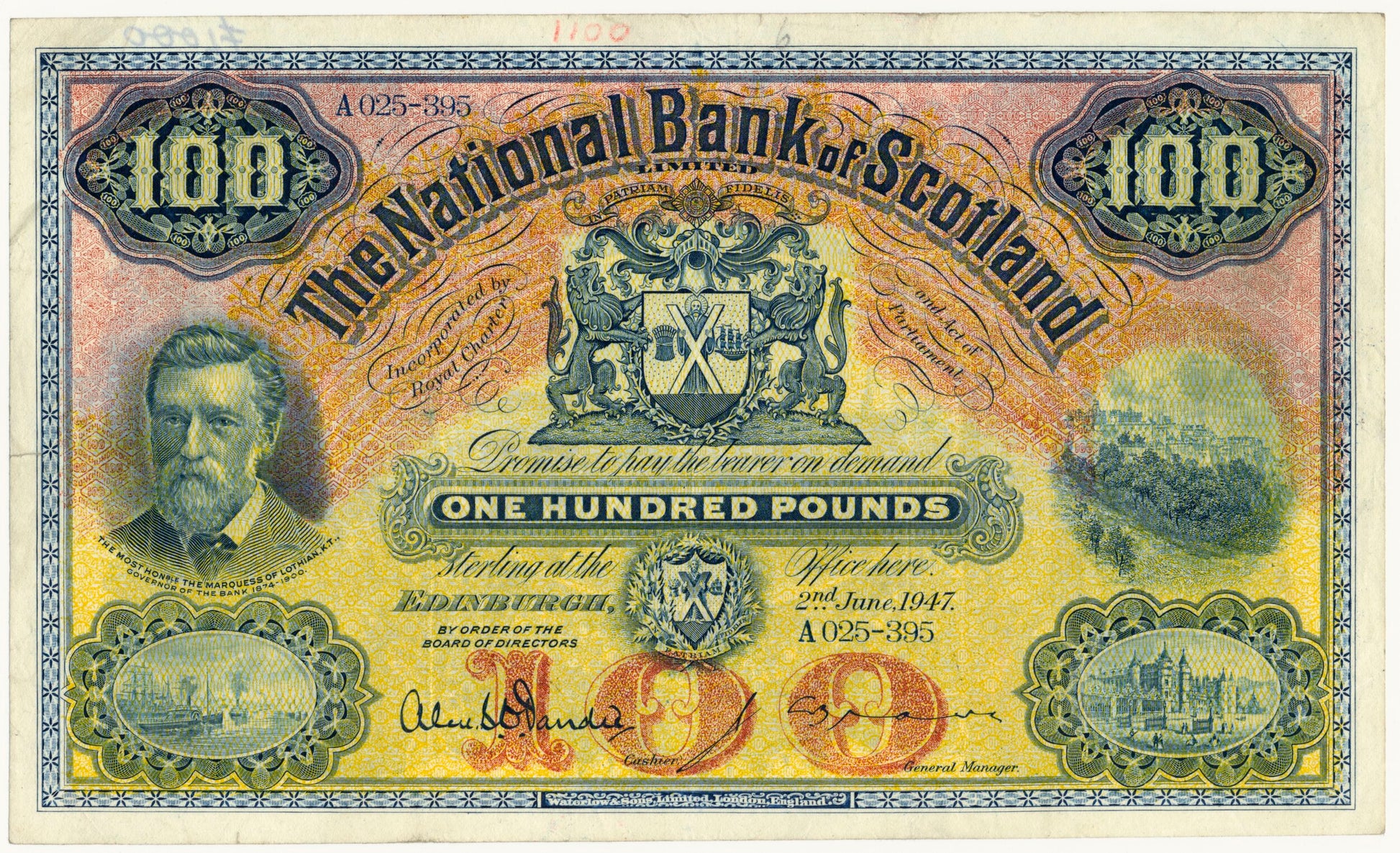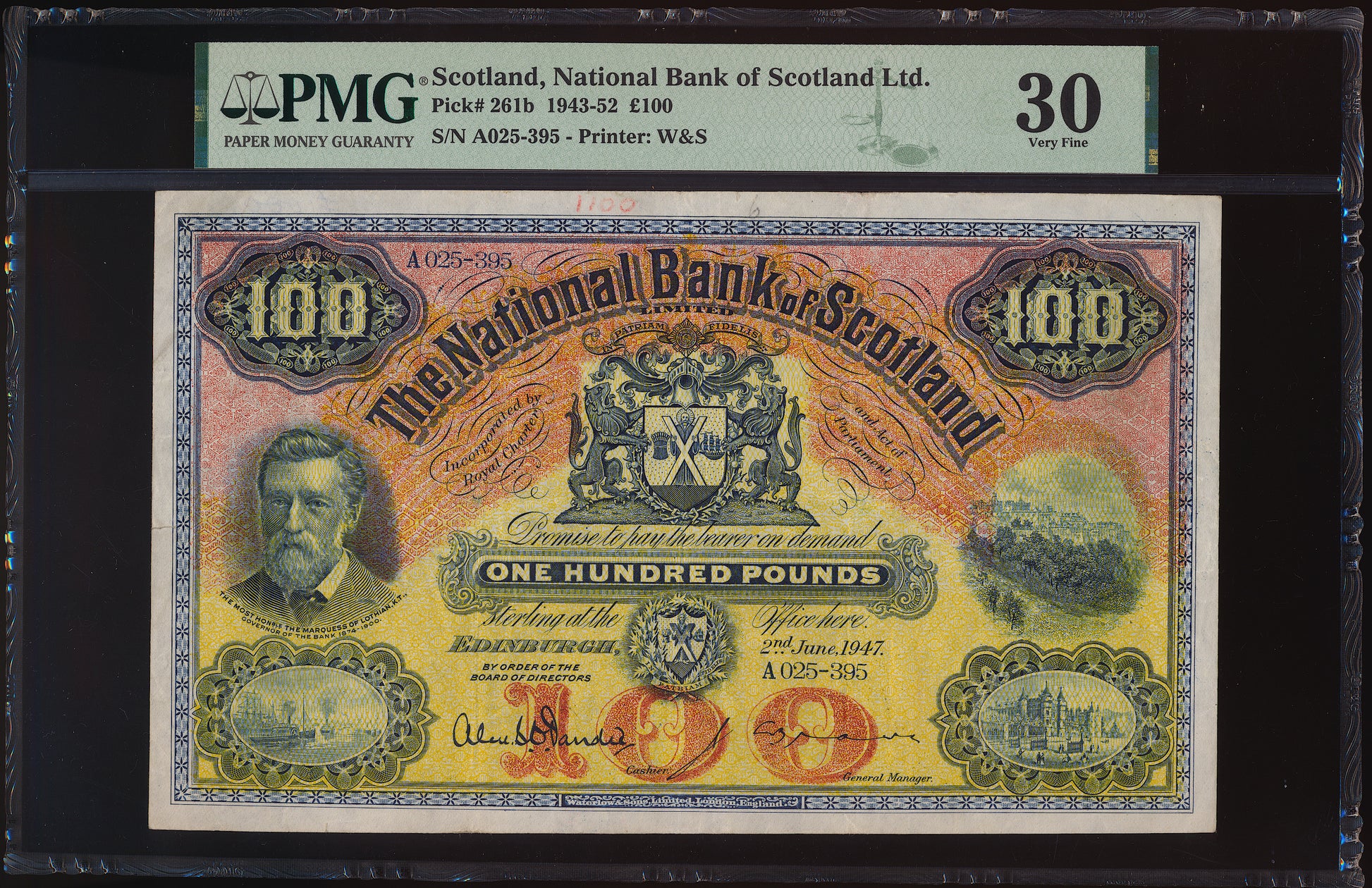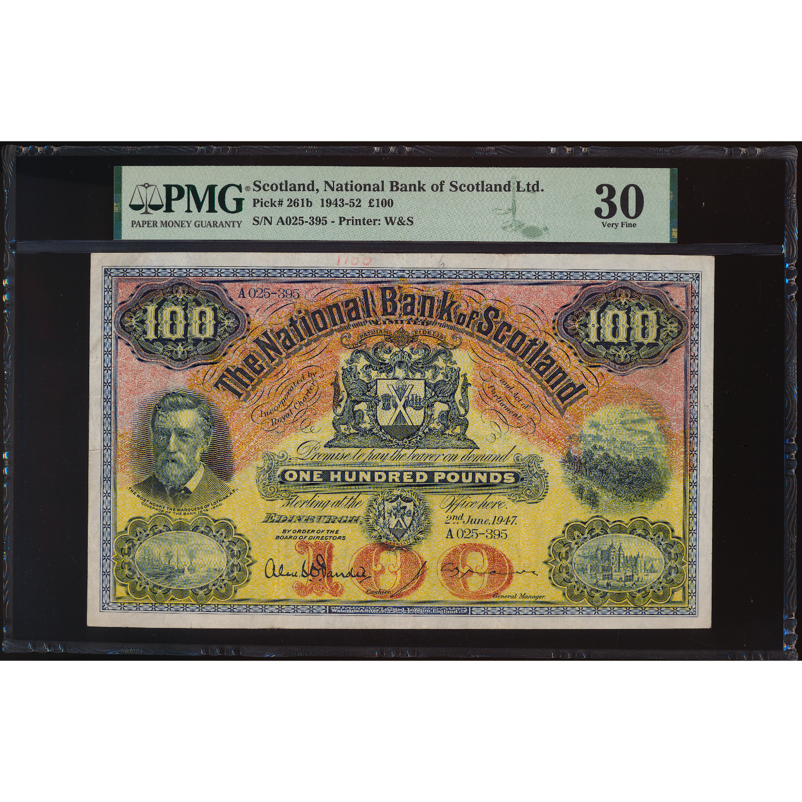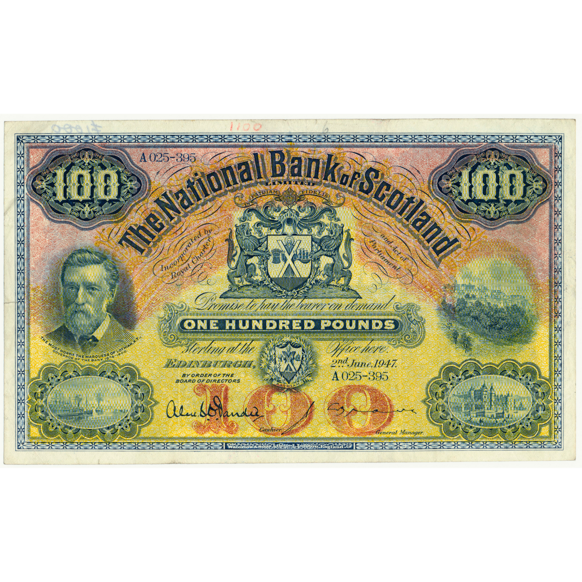 SCOTLAND P.261b SC532b 1947 National Bank of Scotland £100 VF30