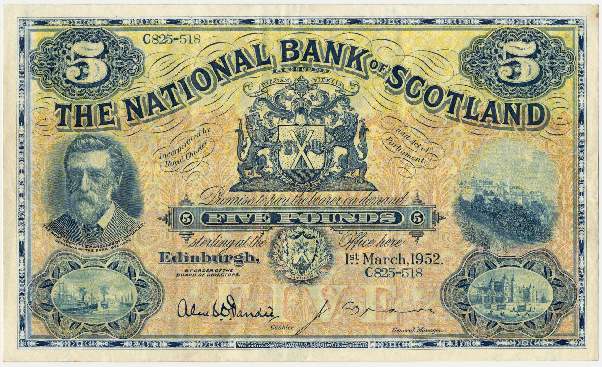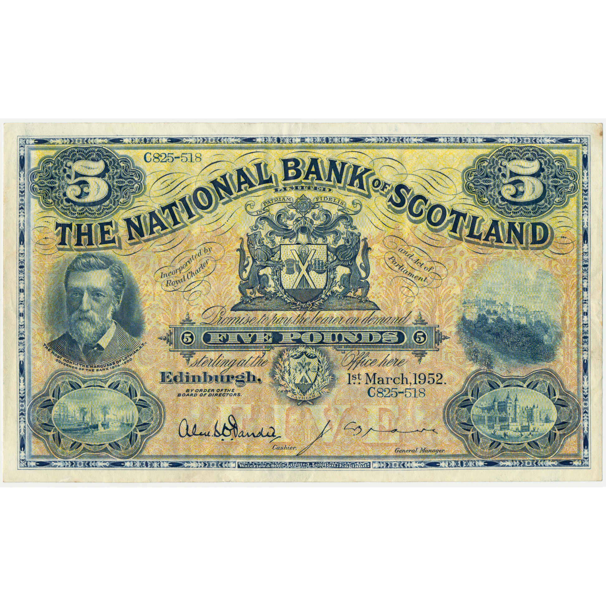 SCOTLAND P.259d SC512f 1952 National Bank of Scotland £5 GVF C
