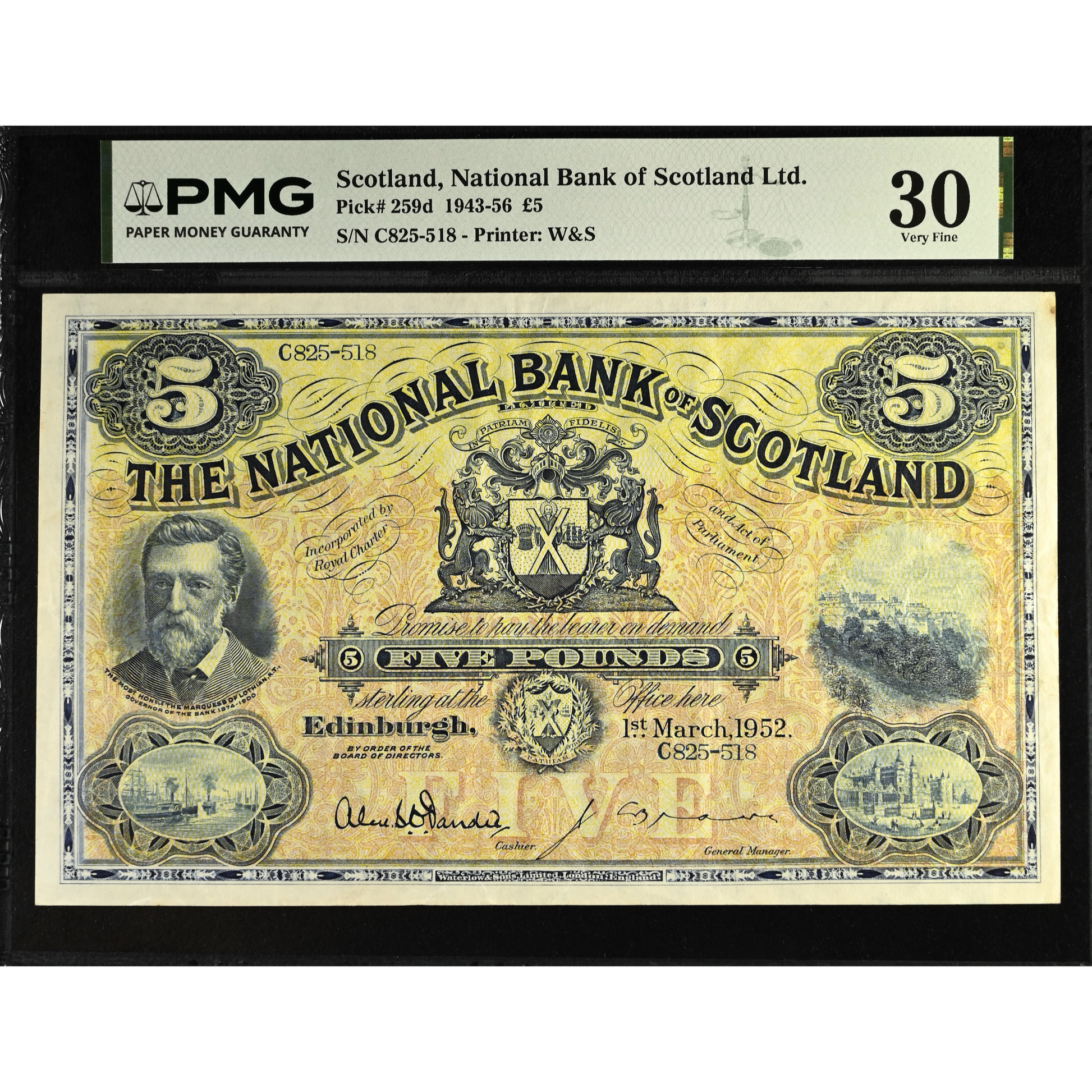 SCOTLAND P.259d SC512f 1952 National Bank of Scotland £5 VF 30