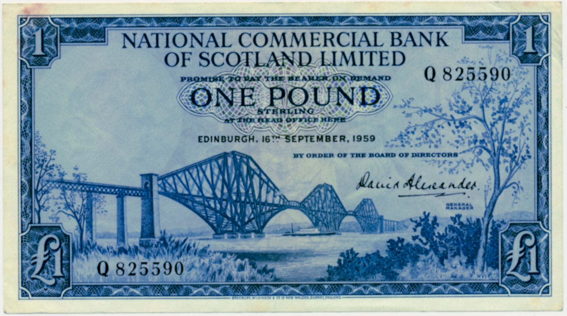 SCOTLAND P.265 SC601 1959 National Commercial Bank of Scotland £1 EF Q