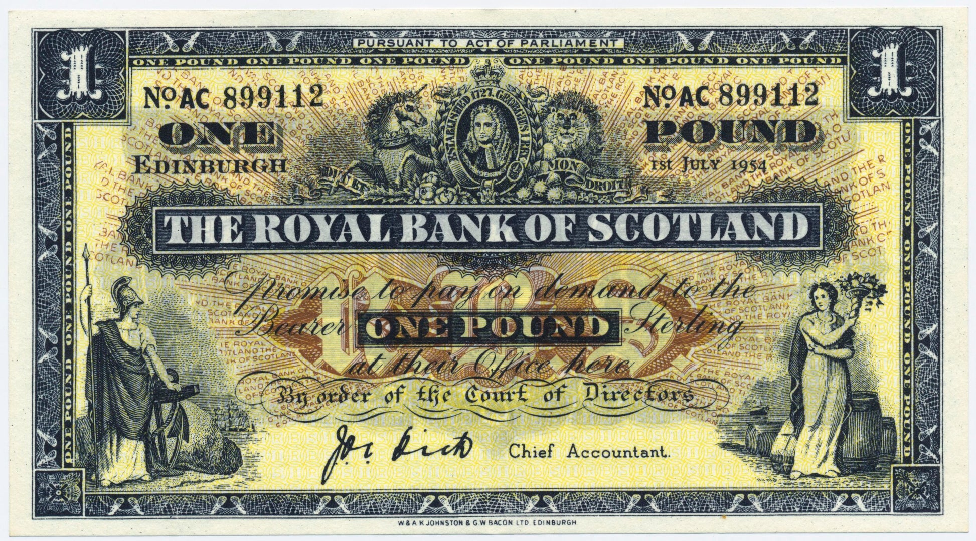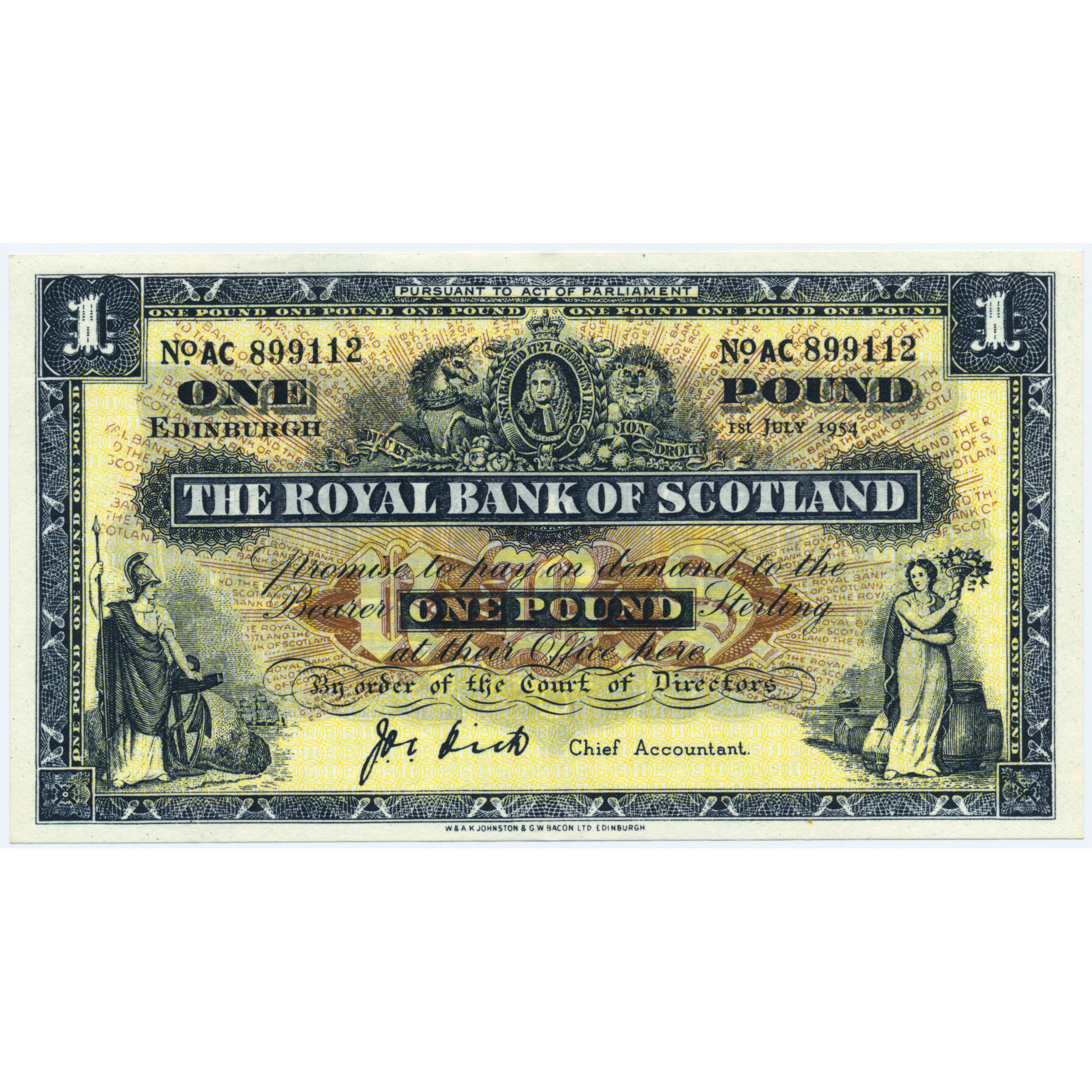 SCOTLAND P.322d SC802f 1954 Royal Bank of Scotland £1 EF AC