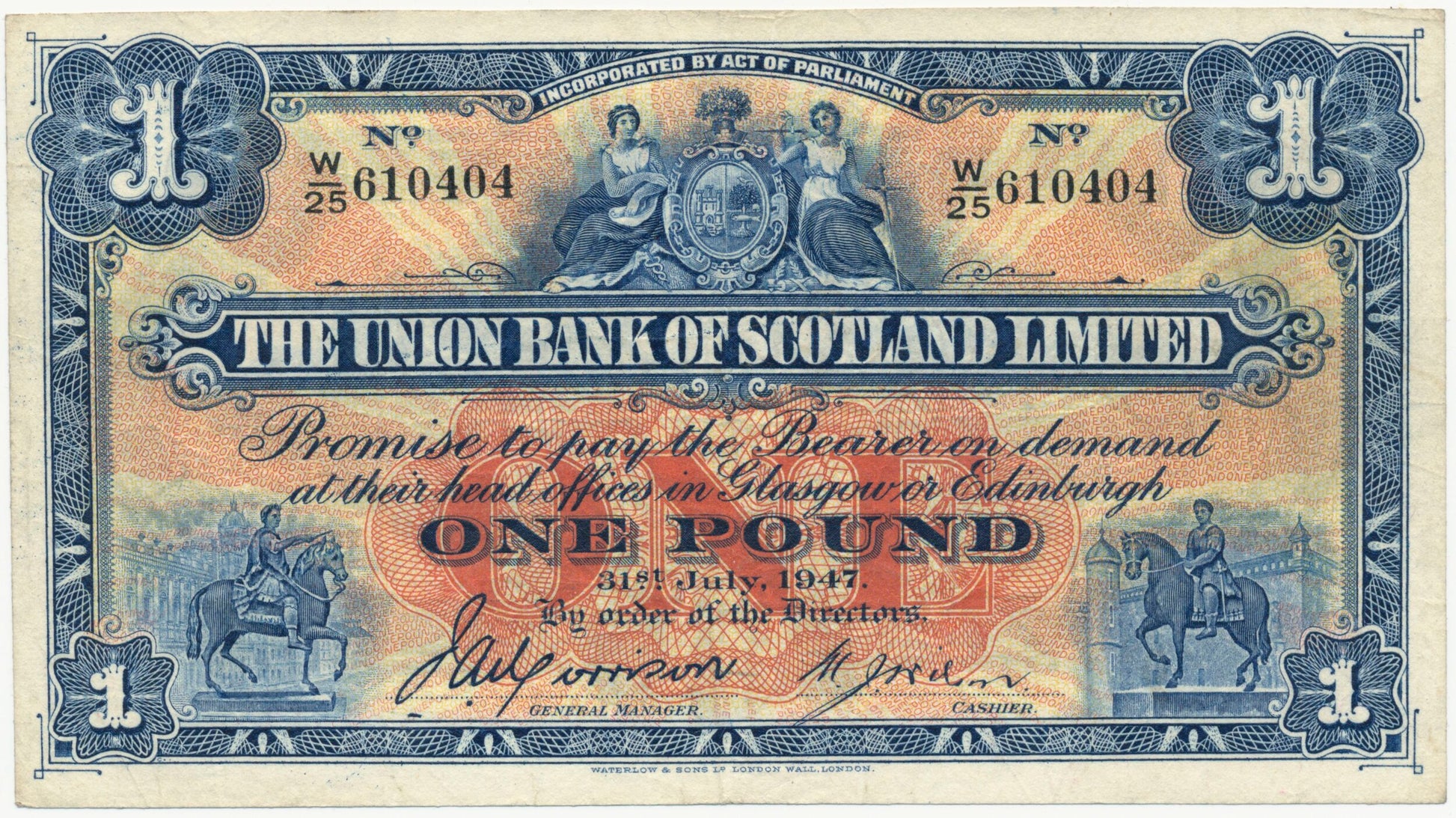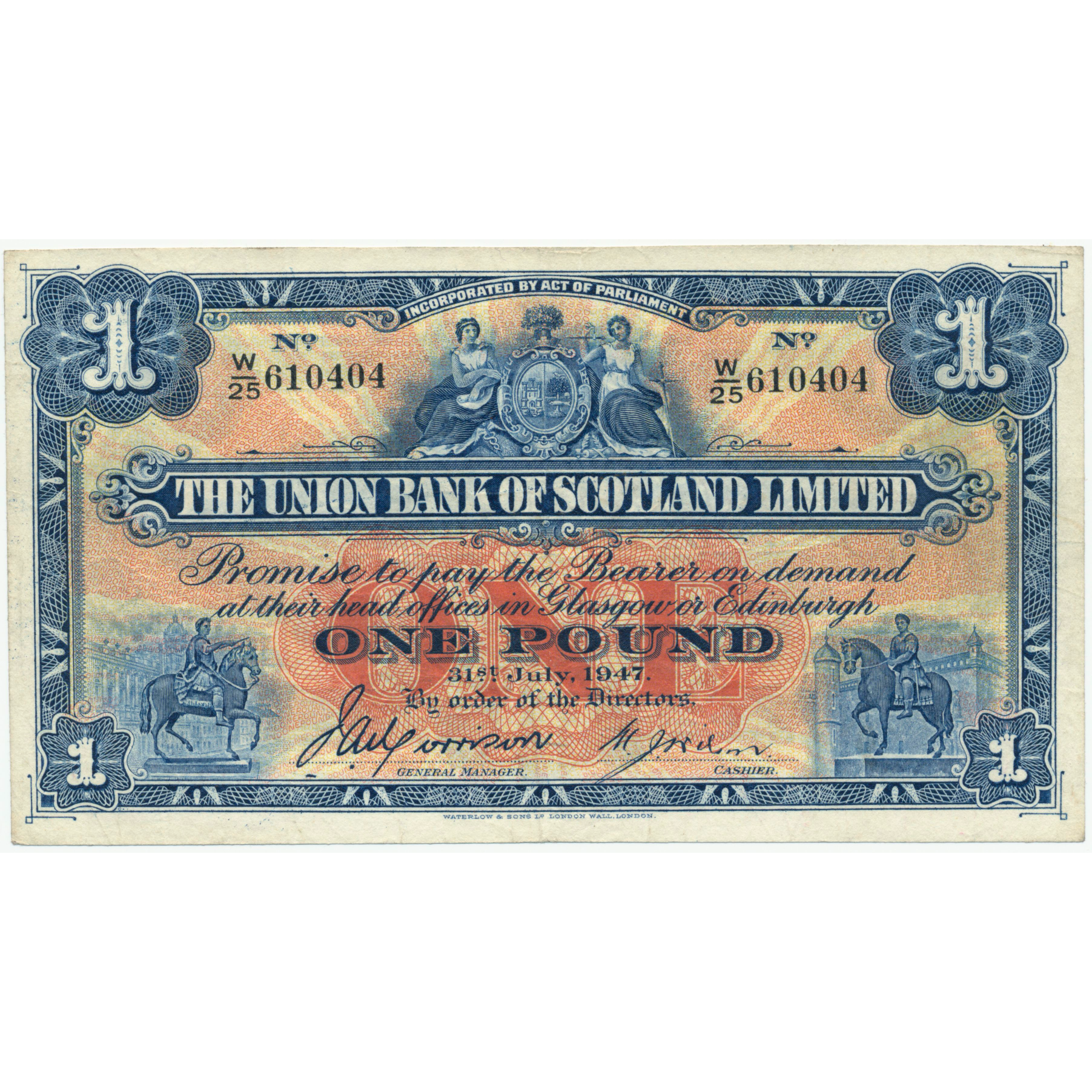 SCOTLAND P.S815c SC903e 1947 Union Bank of Scotland £1 VF W/25