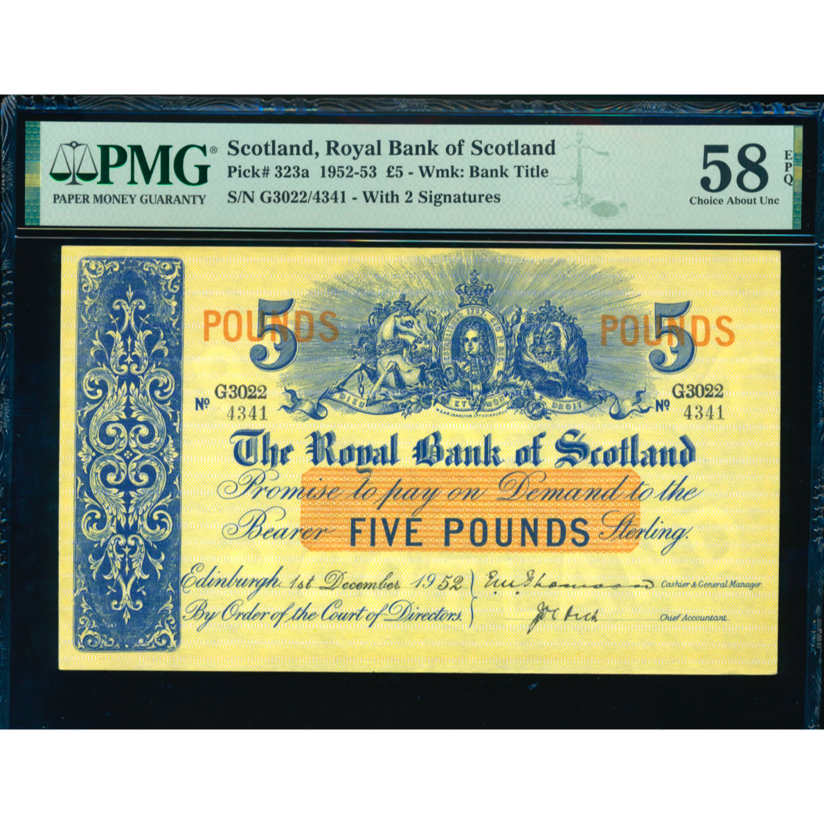 SCOTLAND P.323a SC807a 1952 Royal Bank of Scotland £5 G Choice AUNC 58 EPQ