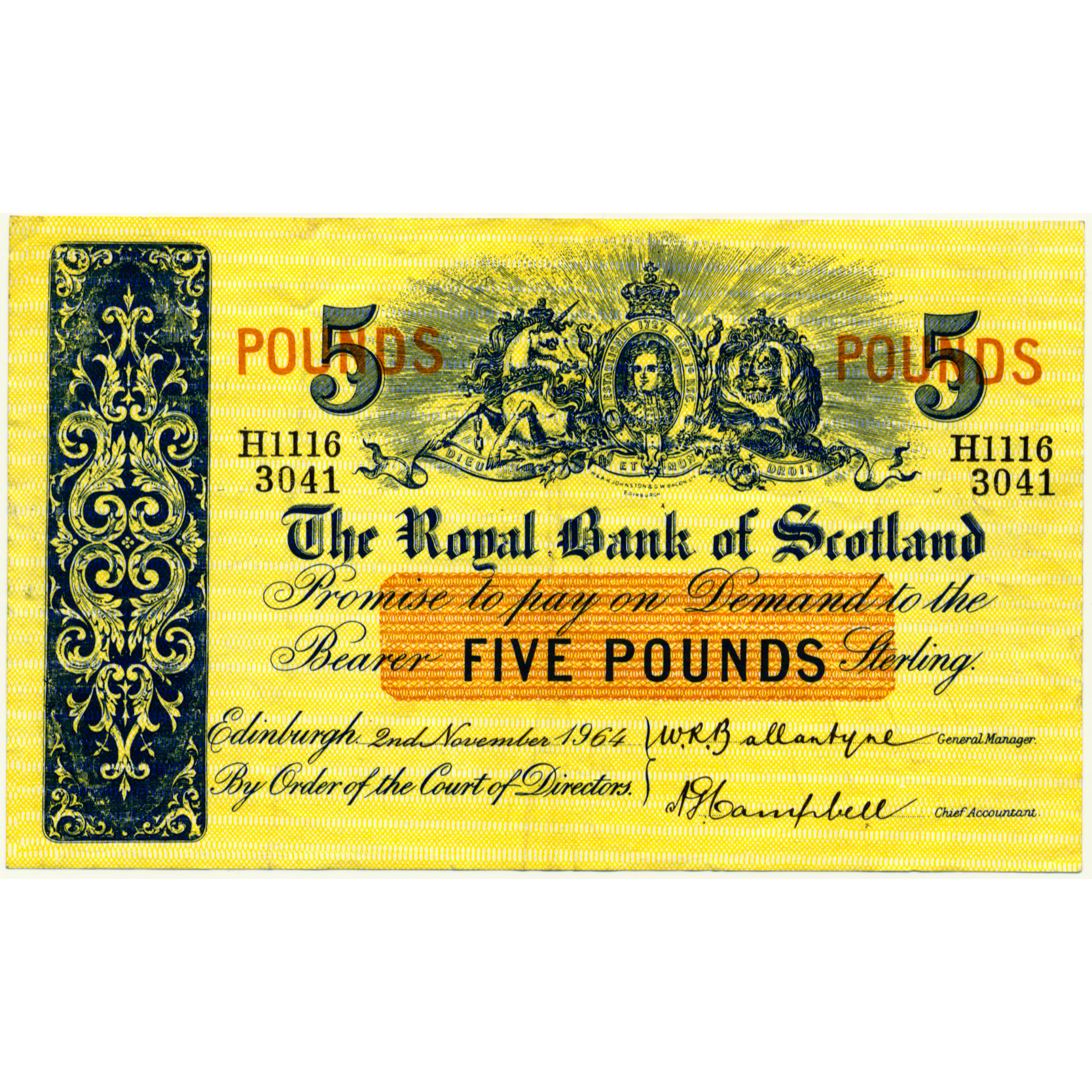 SCOTLAND P.326a SC808a 1964 Royal Bank of Scotland £5 GVF H