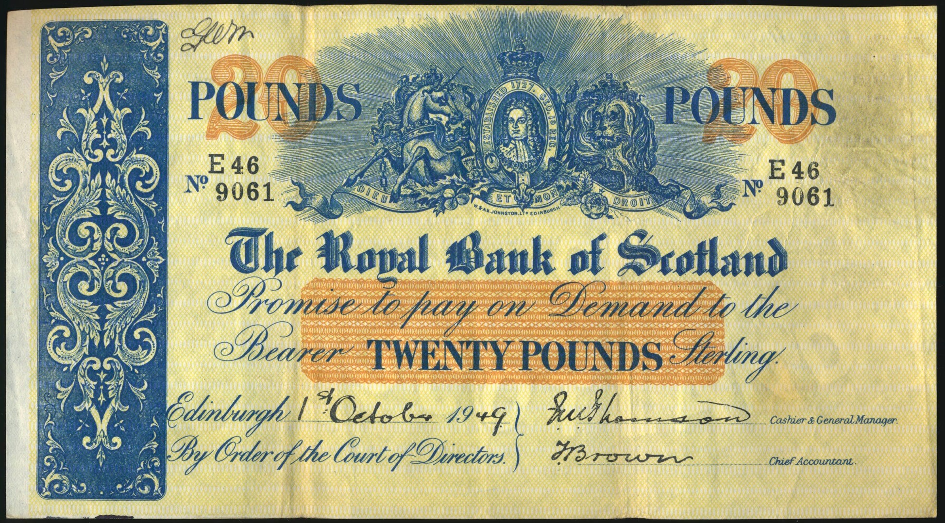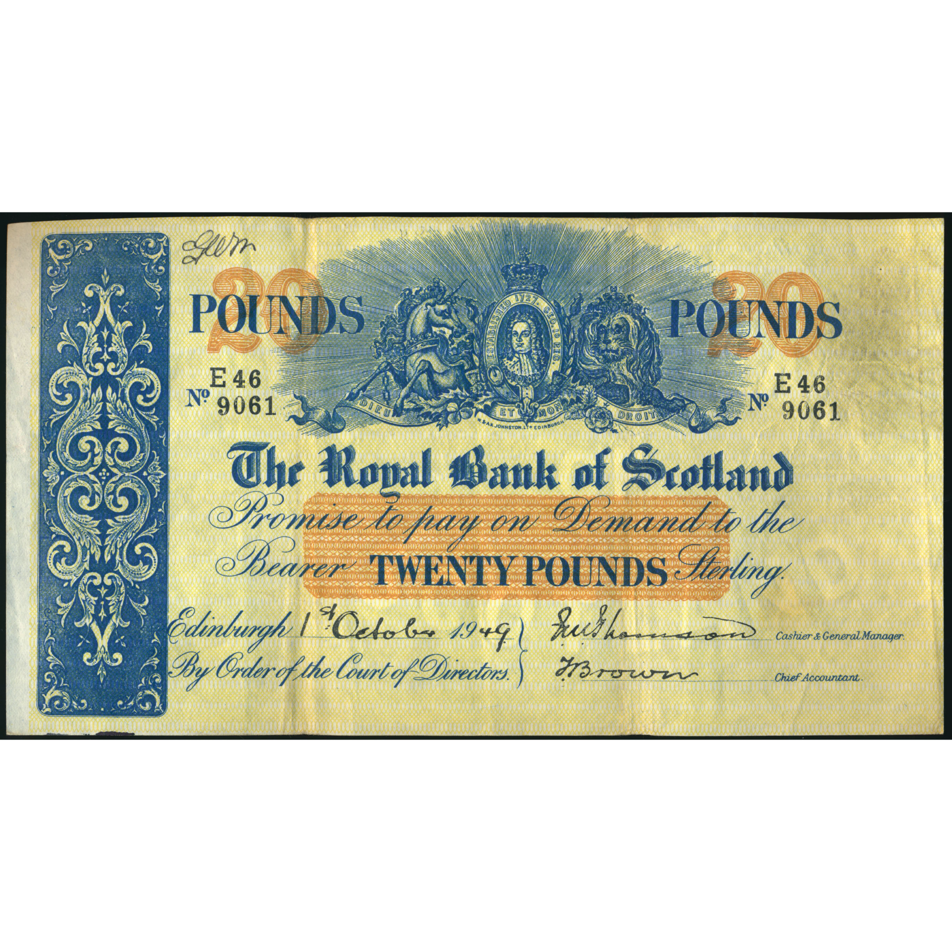 SCOTLAND P.319c SC811b 1949 Royal Bank of Scotland £20 VF E46