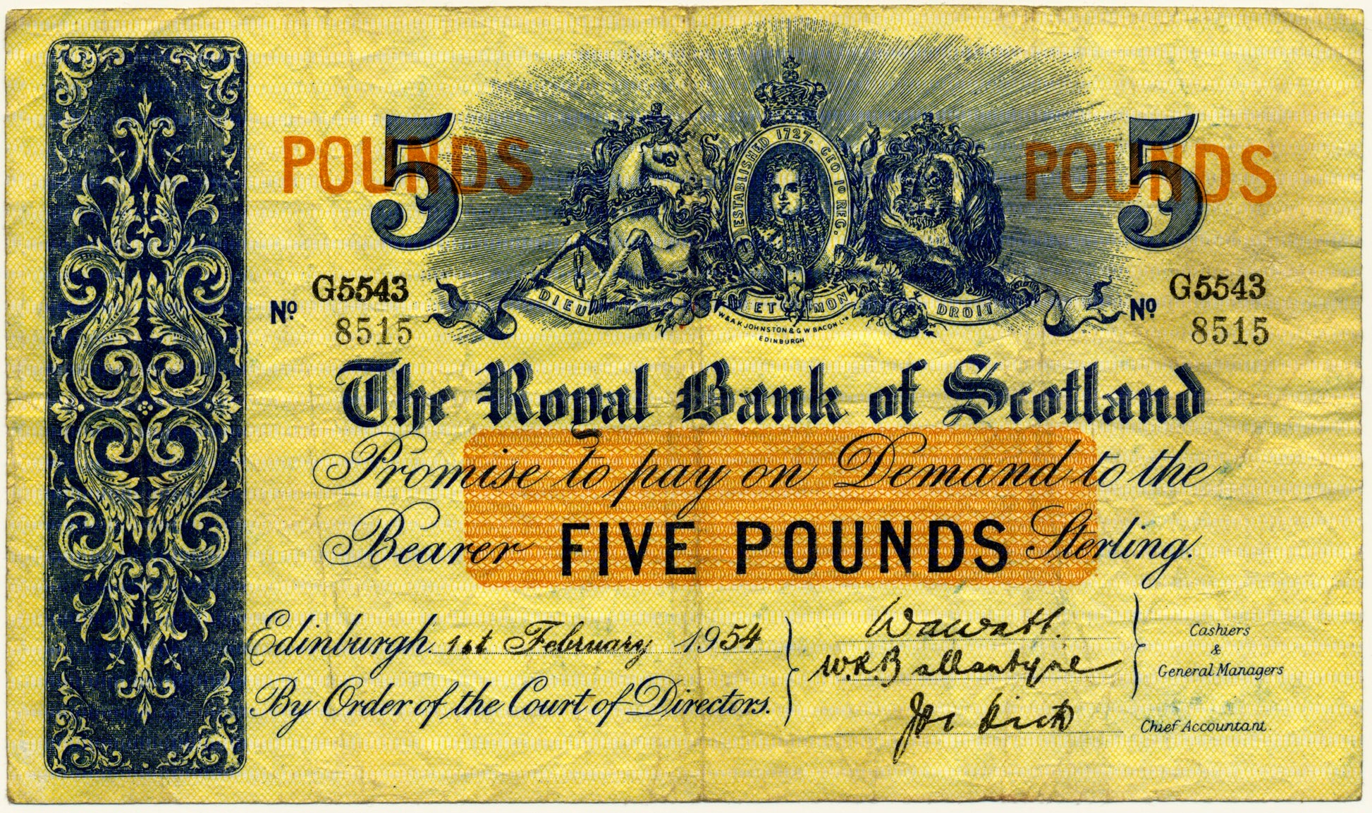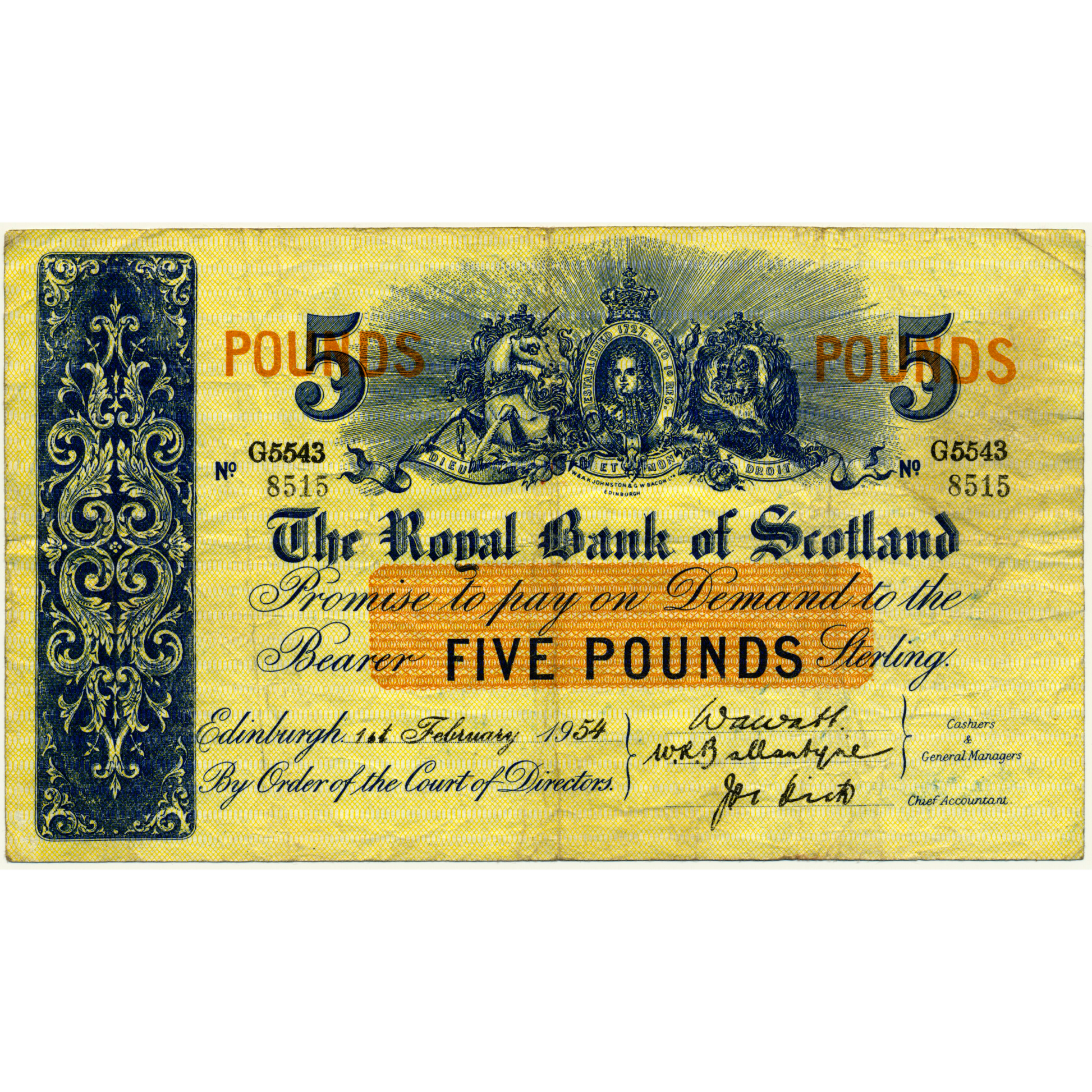 SCOTLAND P.323b SC807b 1954 Royal Bank of Scotland £5 GF G