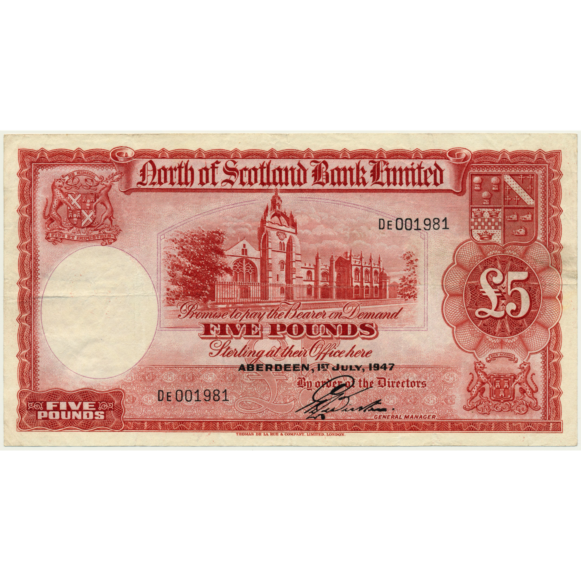 SCOTLAND P.S645 SC715b 1947 North of Scotland Bank £5 VF 30