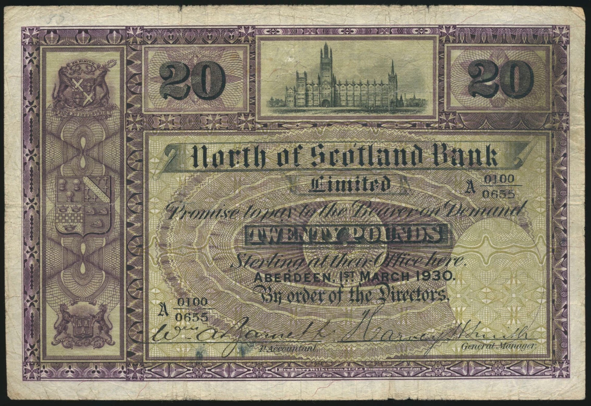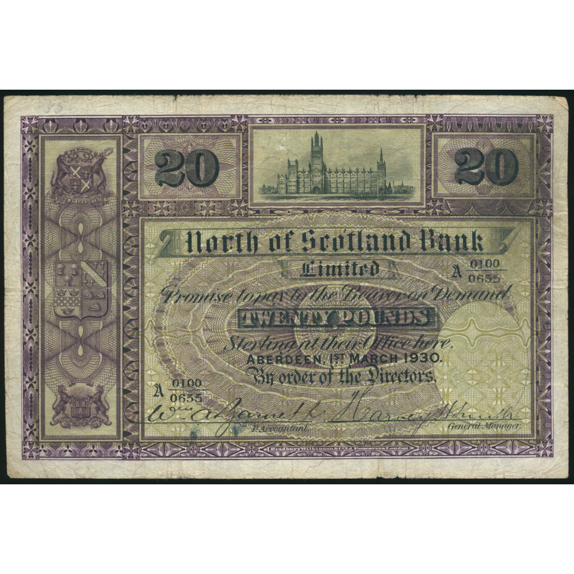 SCOTLAND P.S641 SC716 1930 North of Scotland Bank £20 GF A