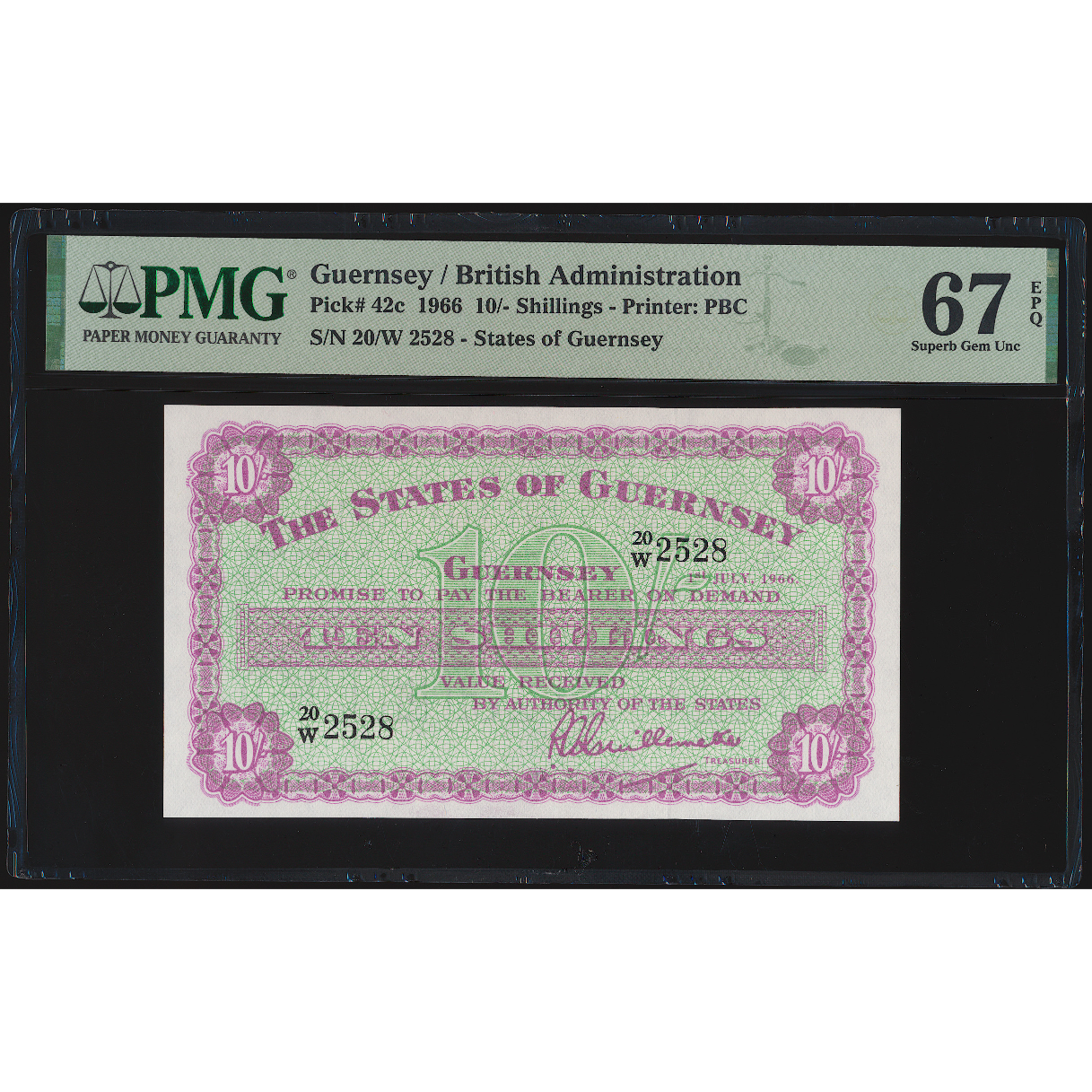 GUERNSEY P.42c GU32b 1966 10s SUPERB GEM UNC 67 EPQ