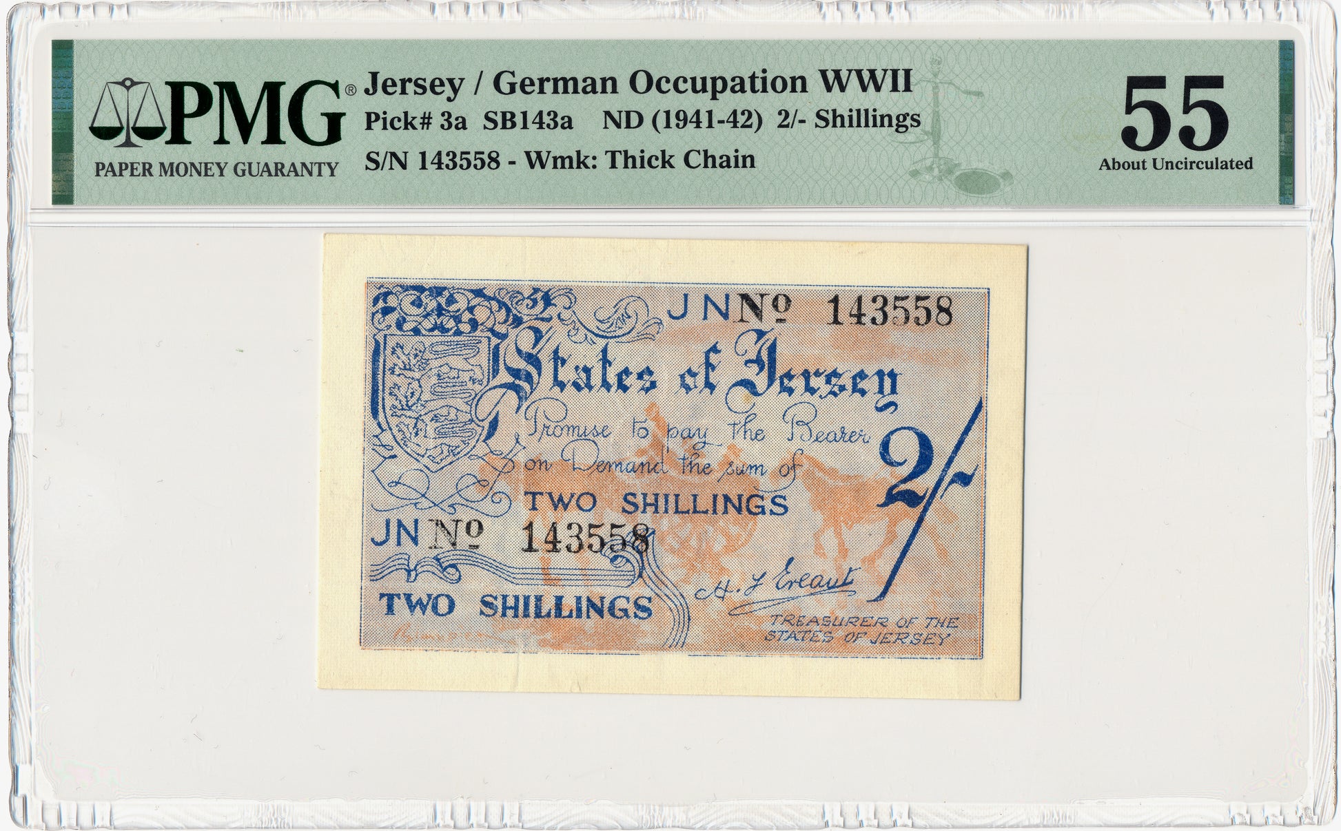 JERSEY P.3a JE4 1942 2 Shillings AUNC 55