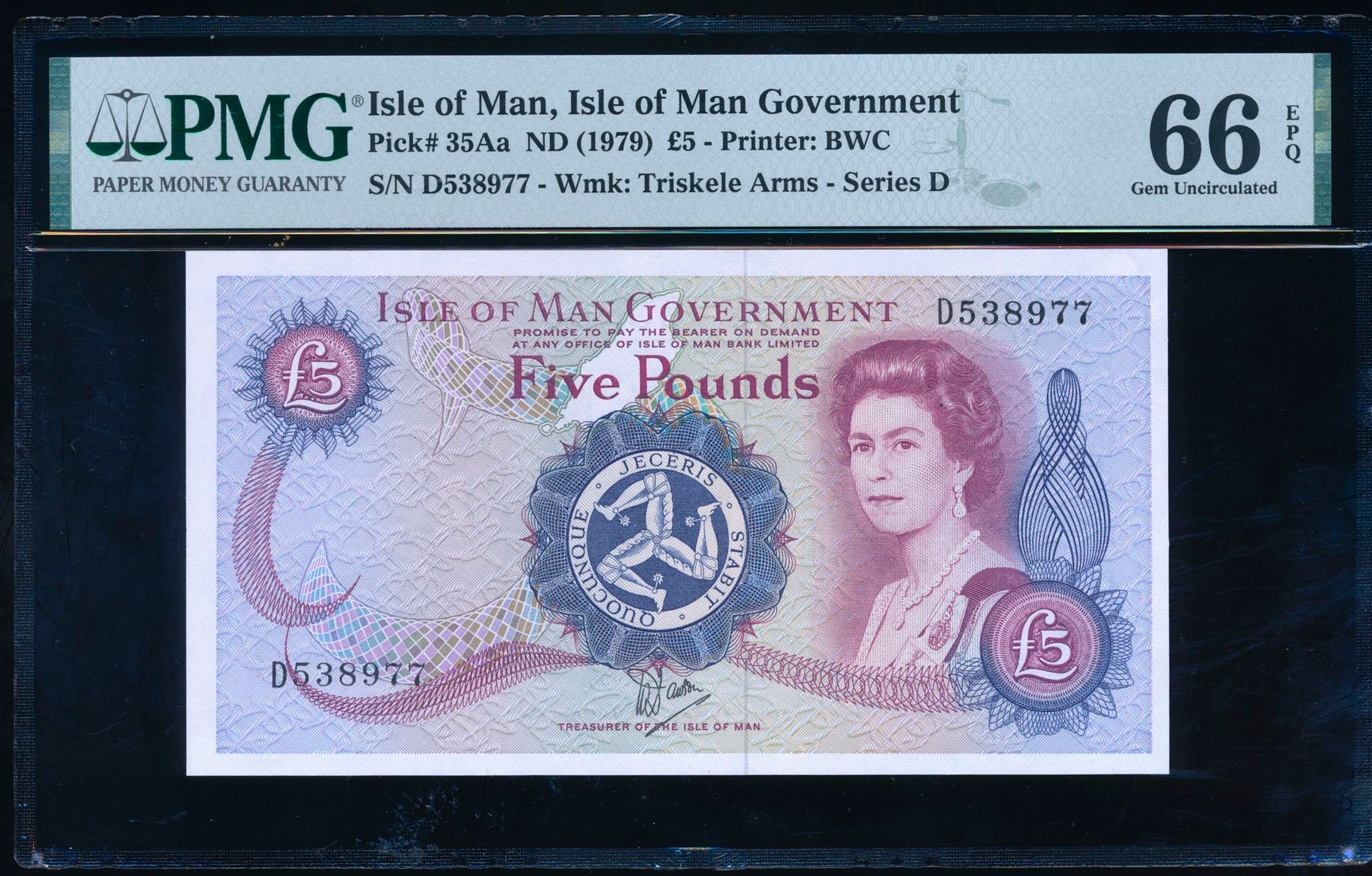 ISLE OF MAN P.35Aa IM43b 1979-1991 £5 GEM UNC 66 EPQ