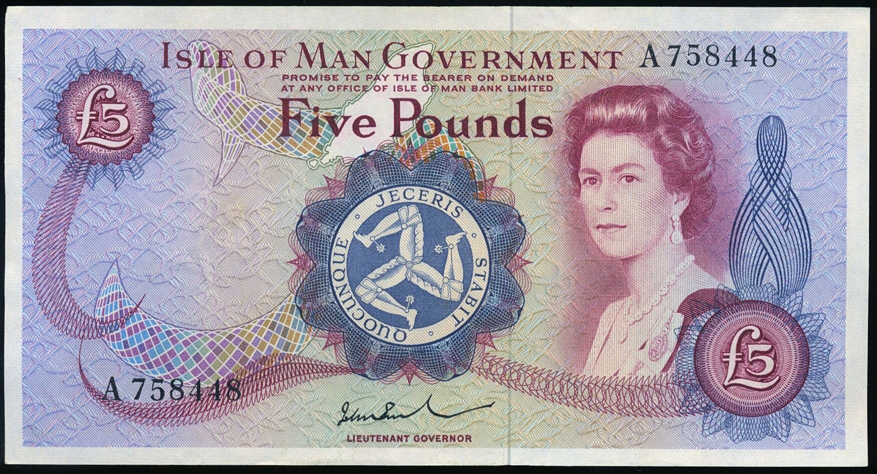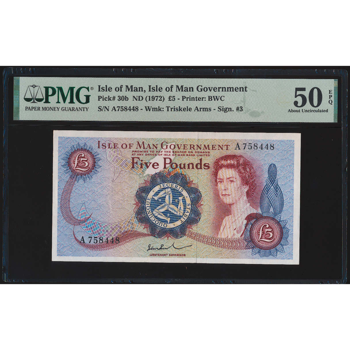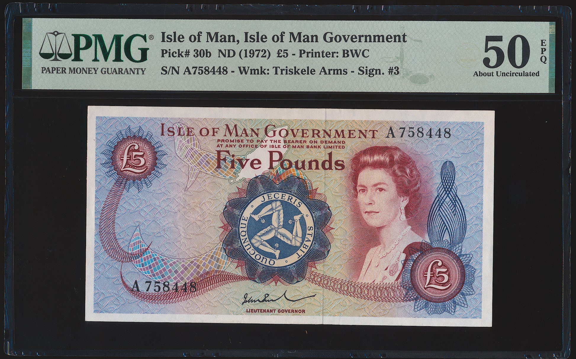 ISLE OF MAN P.30b IM42b 1972-1979 £5 AUNC 50 EPQ
