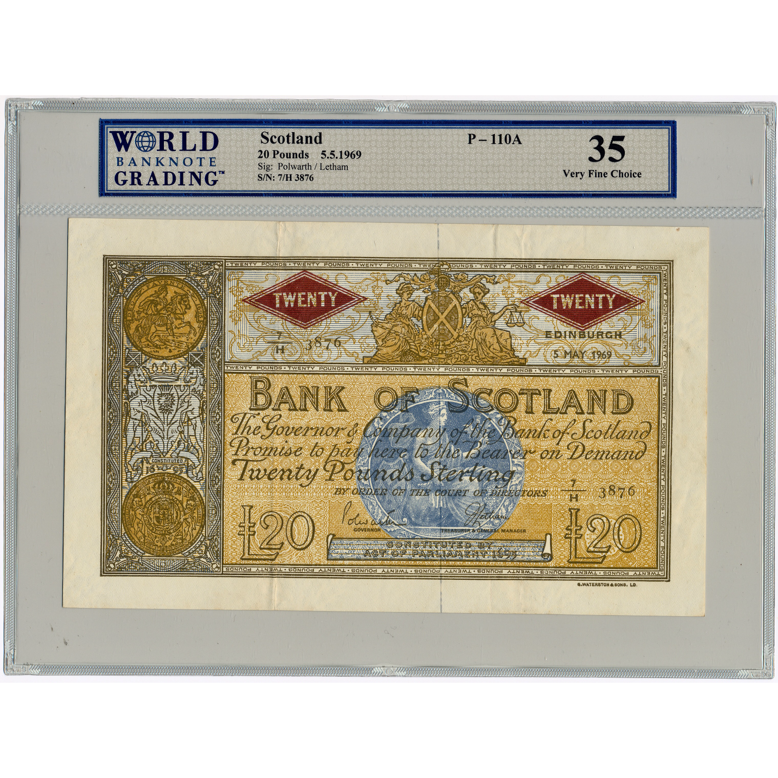 SCOTLAND P.110A SC144 1969 Bank of Scotland £20 Choice VF 35