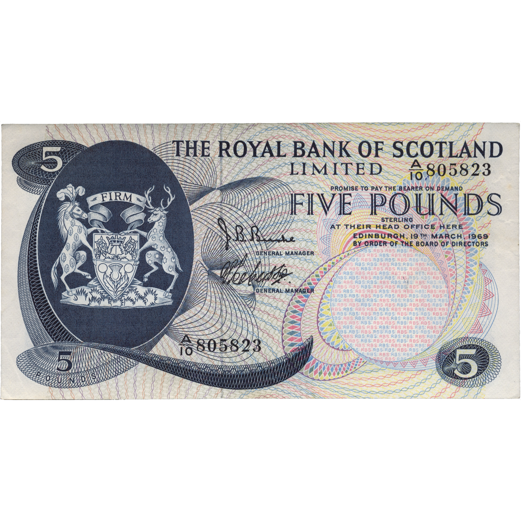 SCOTLAND P.330 SC816a 1969 Royal Bank of Scotland £5 EF