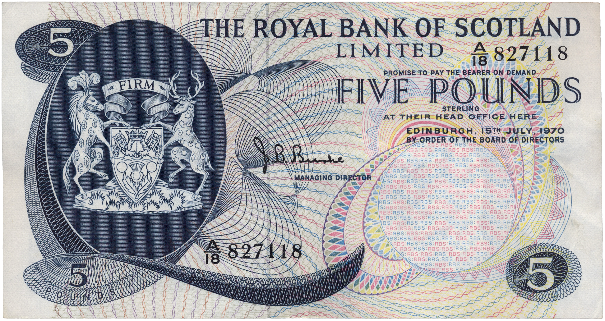 SCOTLAND P.335 SC816b 1970 Royal Bank of Scotland £5 NEF