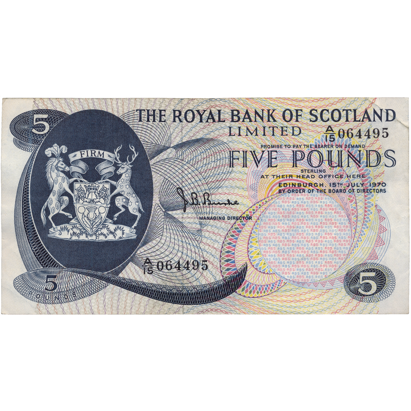 SCOTLAND P.335 SC816b 1970 Royal Bank of Scotland £5 VF