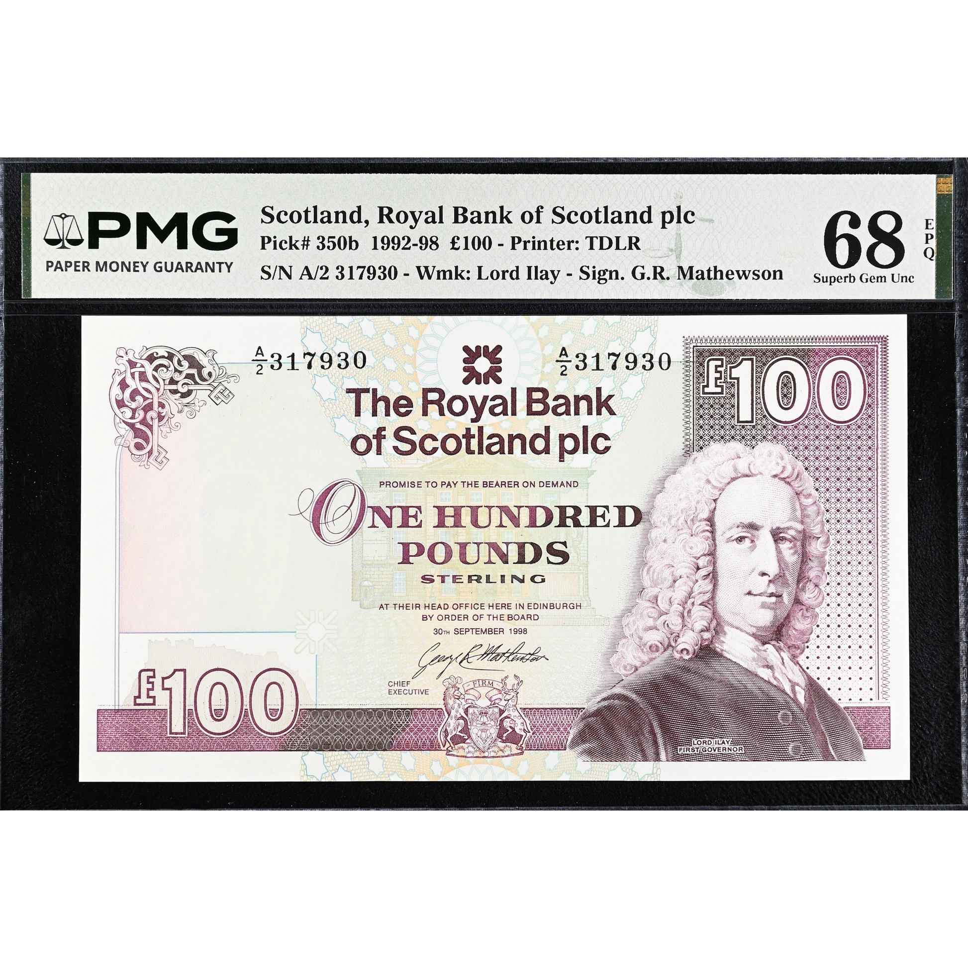 SCOTLAND P.350b SC882b 1998 Royal Bank of Scotland £100 A/2 Superb Gem UNC 68 EPQ TOP POP