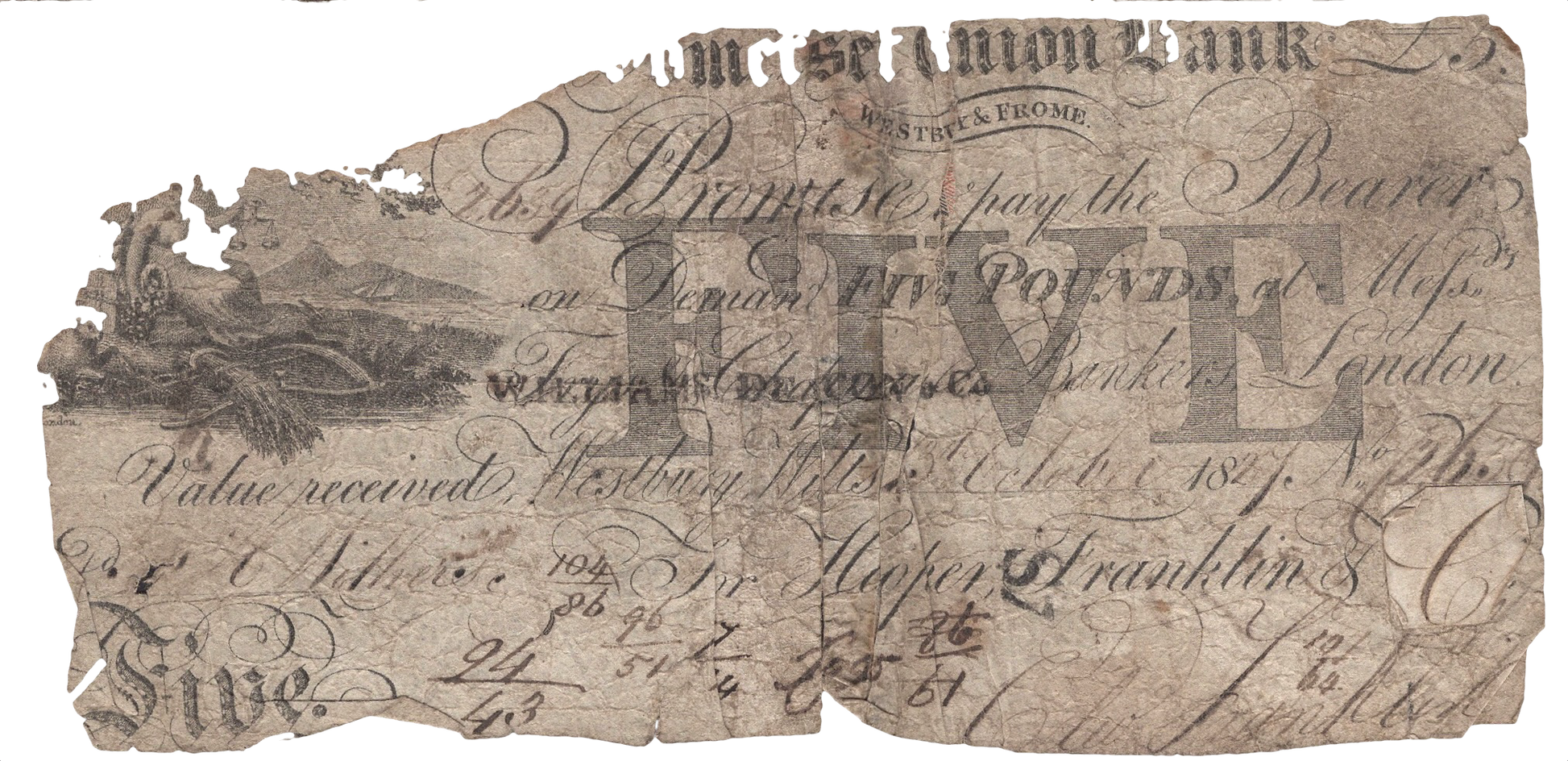 Wiltshire & Somerset Union Bank 1827 £5 banknote Outing 2328e rare