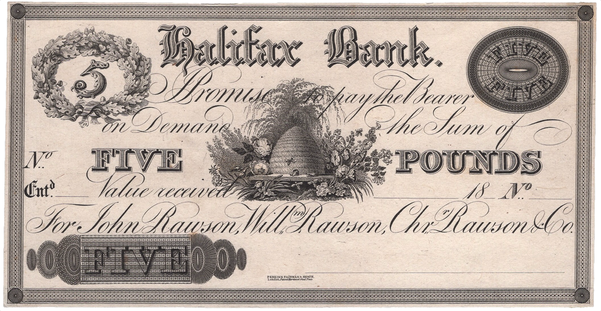 Halifax Bank 18__ £5 proof banknote Out 886c