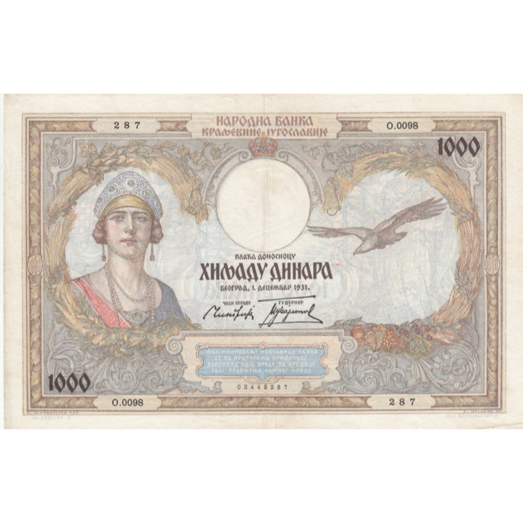 YUGOSLAVIA P.29 1931 20 Dinar GVF